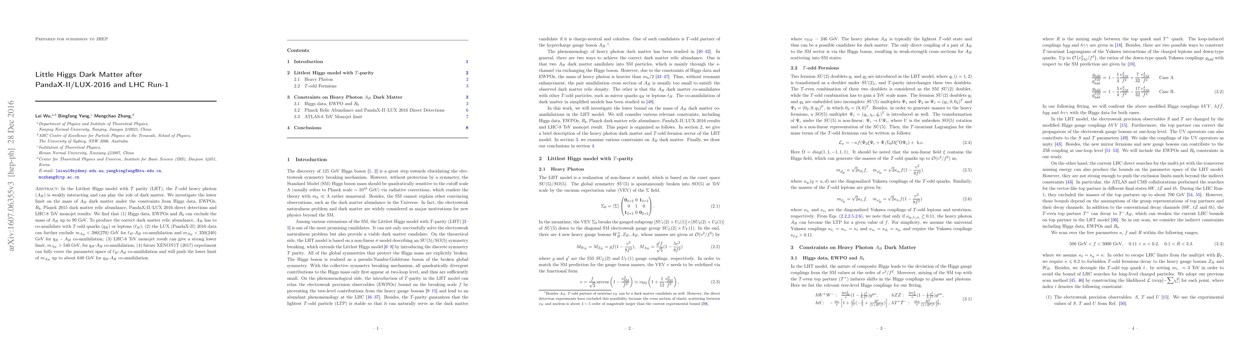 This paper examines the mass constraints on the $T$-odd heavy photon ($A_H$) in the Littlest Higgs model as dark matter, considering data from Higgs, electroweak precision, and LHC experiments, as well as direct detection results from PandaX-II/LUX 2016. It finds that $A_H$ must co-annihilate with $T$-odd quarks or leptons to match the dark matter relic density, with future XENON1T experiments expected to further constrain its mass.