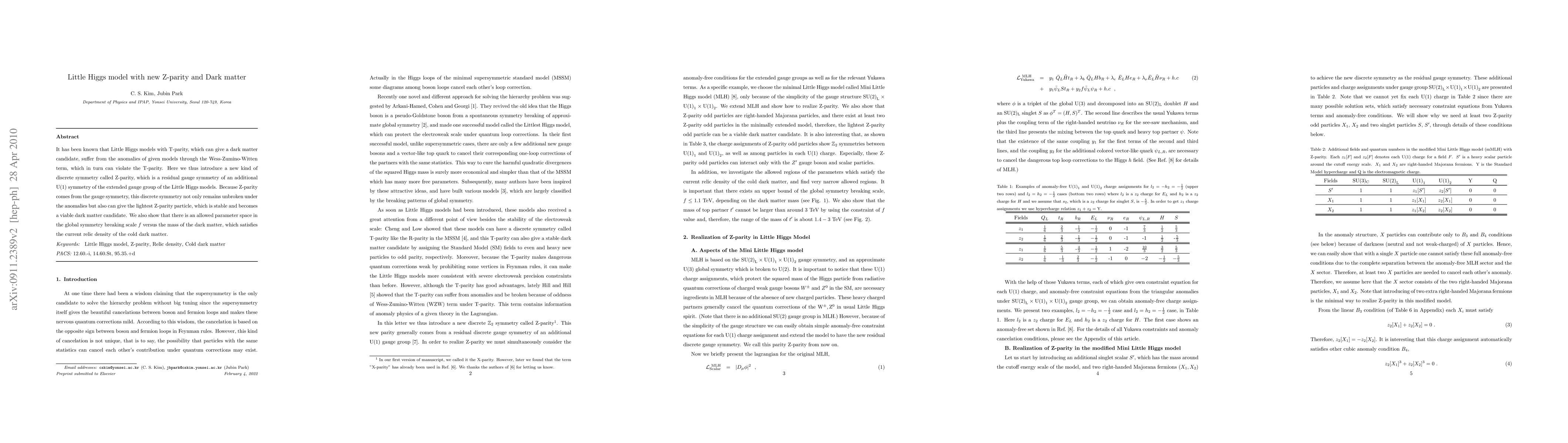 This research paper proposes a new Z-parity symmetry in Little Higgs models as a solution to dark matter anomalies, introducing a viable candidate for the lightest Z-parity particle with stable mass.