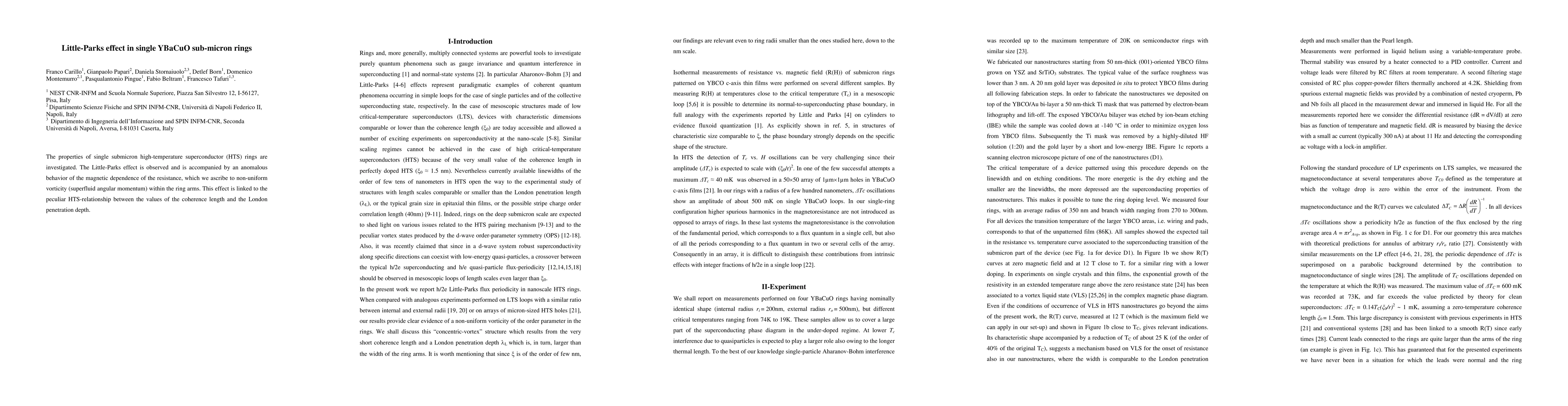 Researchers observed the Little-Parks effect in single submicron YBaCuO rings, attributed to non-uniform vorticity within ring arms, linked to unique high-temperature superconductor properties.