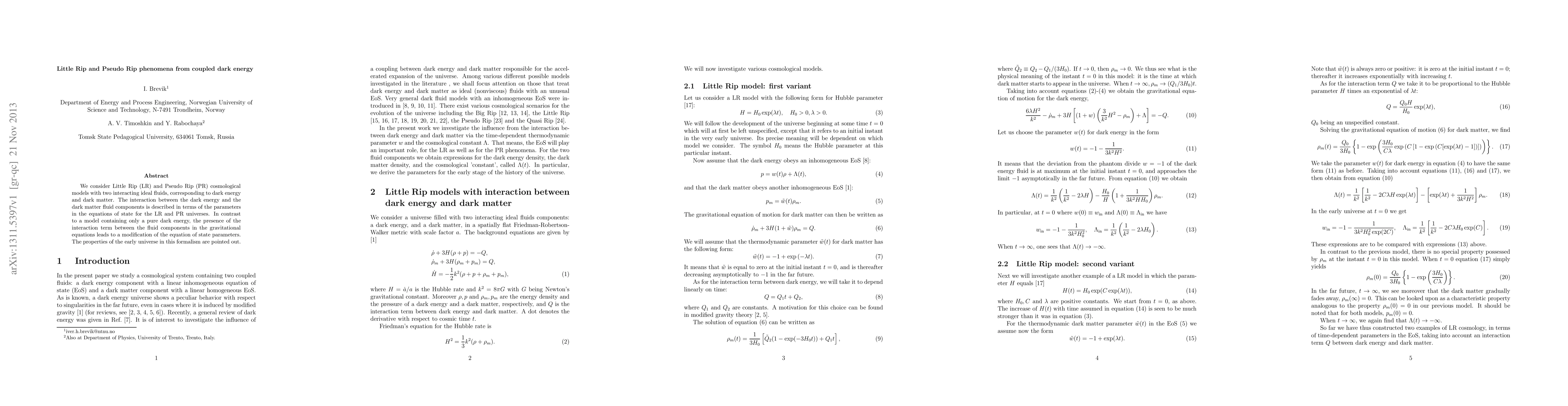 This paper explores Little Rip (LR) and Pseudo Rip (PR) cosmological models with interacting dark energy and dark matter fluids, noting that interactions modify equation of state parameters. It highlights the implications for the early universe in these modified models.