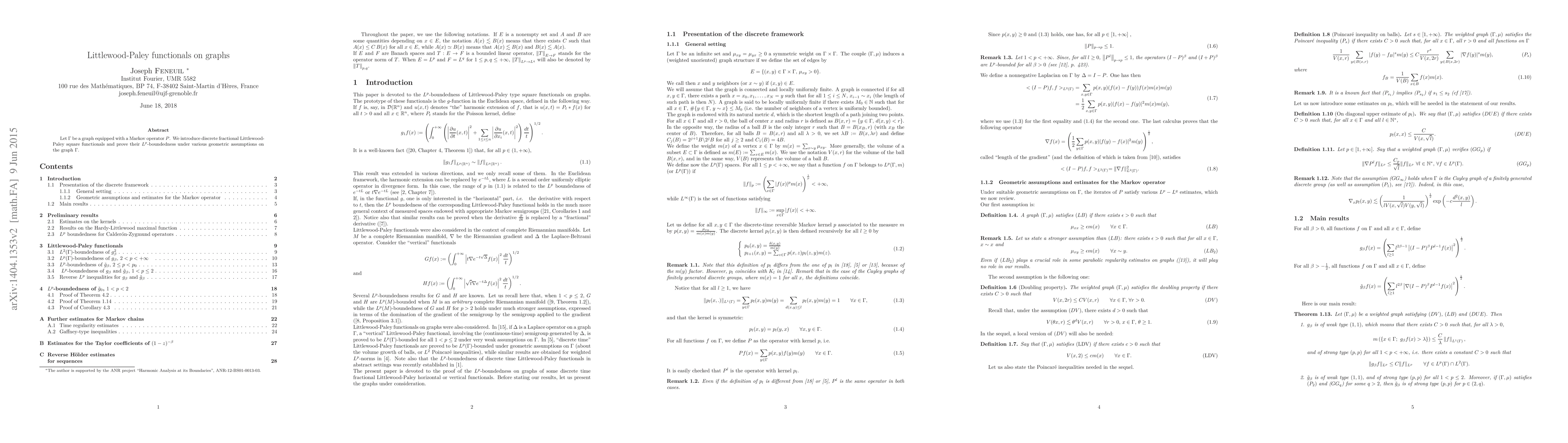 This paper introduces discrete fractional Littlewood-Paley square functionals on graphs with a Markov operator and demonstrates their $L^p$-boundedness under specific geometric conditions on the graph.