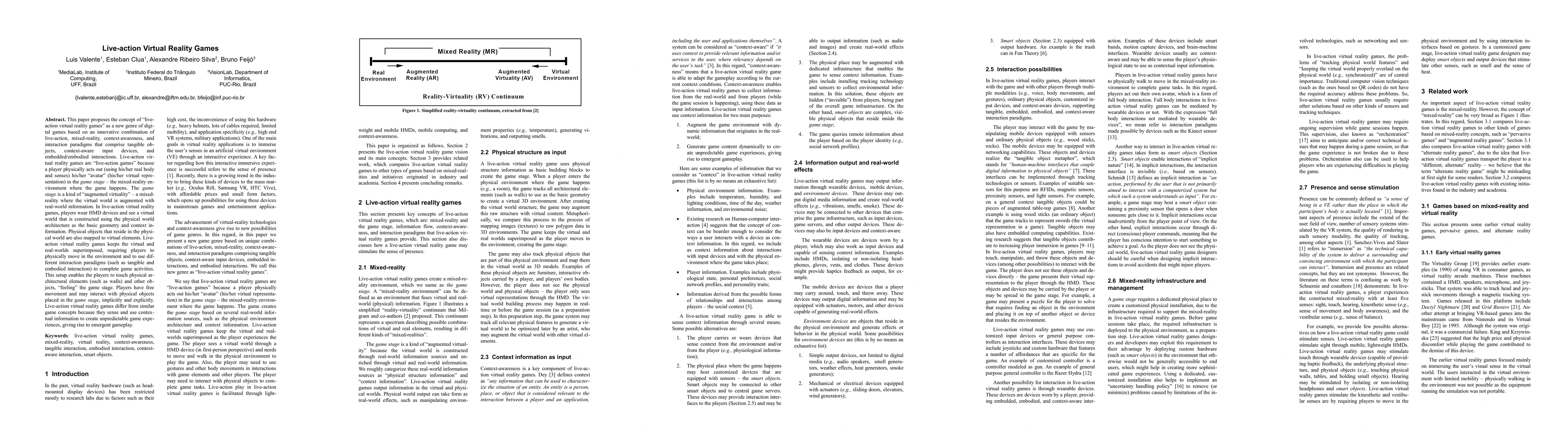 This paper introduces "live-action virtual reality games," a new genre combining live-action, mixed-reality, and context-awareness, where players physically act out their avatars in an augmented virtuality environment, using tangible and embodied interactions to complete game activities. These games leverage contextual information to create unpredictable and emergent gameplay experiences.
