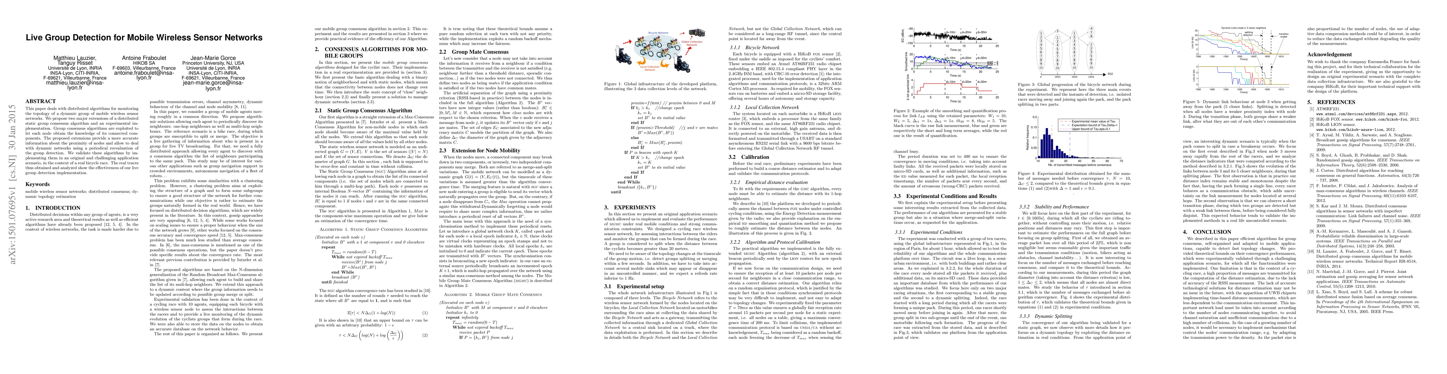 This paper proposes distributed algorithms for monitoring dynamic topologies in mobile wireless sensor networks, enhancing group consensus to provide accurate proximity information. The effectiveness of the proposed live group detection is validated through an experimental implementation in a real bicycle race scenario.