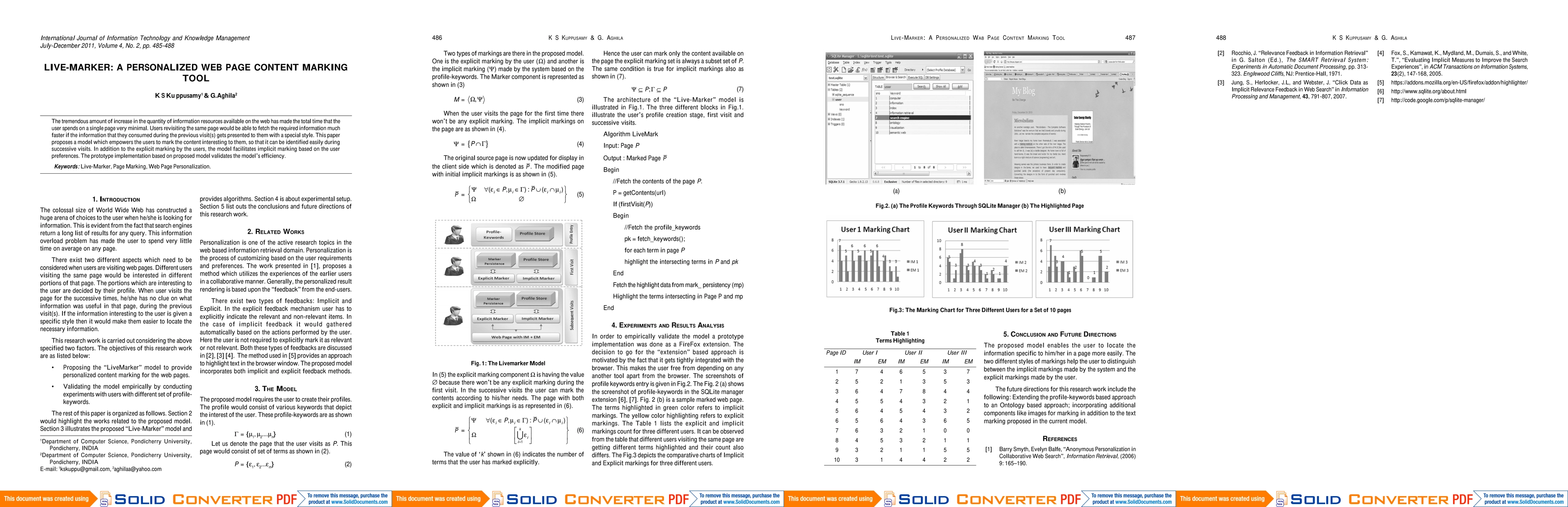 The paper proposes Live-marker, a tool enabling users to personalize web page content by marking interesting information for easy retrieval during future visits, combining both explicit and implicit marking based on user preferences. The prototype implementation demonstrates the model's efficiency in enhancing user navigation through personalized content.