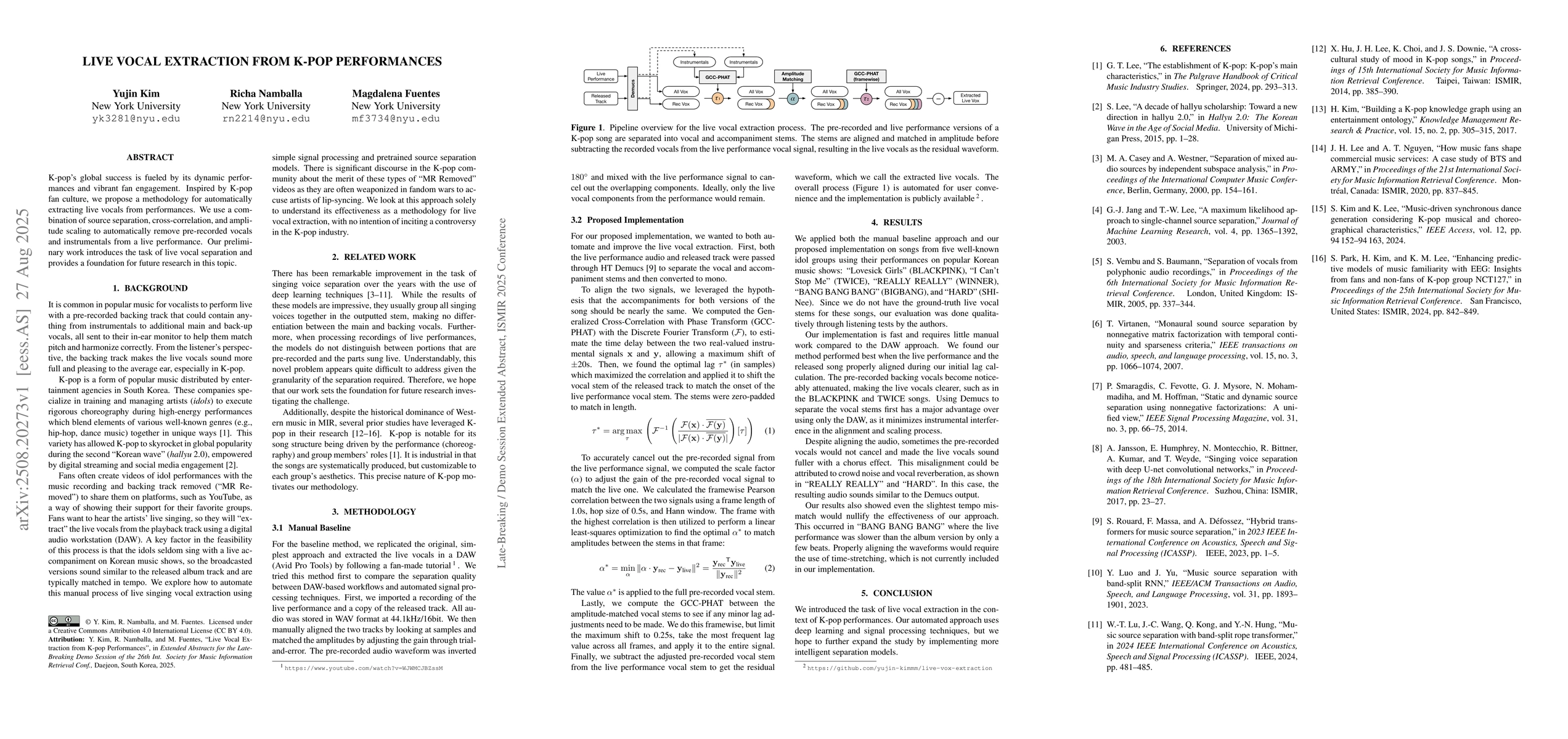 K-pop's global success is fueled by its dynamic performances and vibrant fan engagement. Inspired by K-pop fan culture, we propose a methodology for automatically extracting live vocals from performances. We use a combination of source separation, cross-correlation, and amplitude scaling to automatically remove pre-recorded vocals and instrumentals from a live performance. Our preliminary work introduces the task of live vocal separation and provides a foundation for future research in this topic.