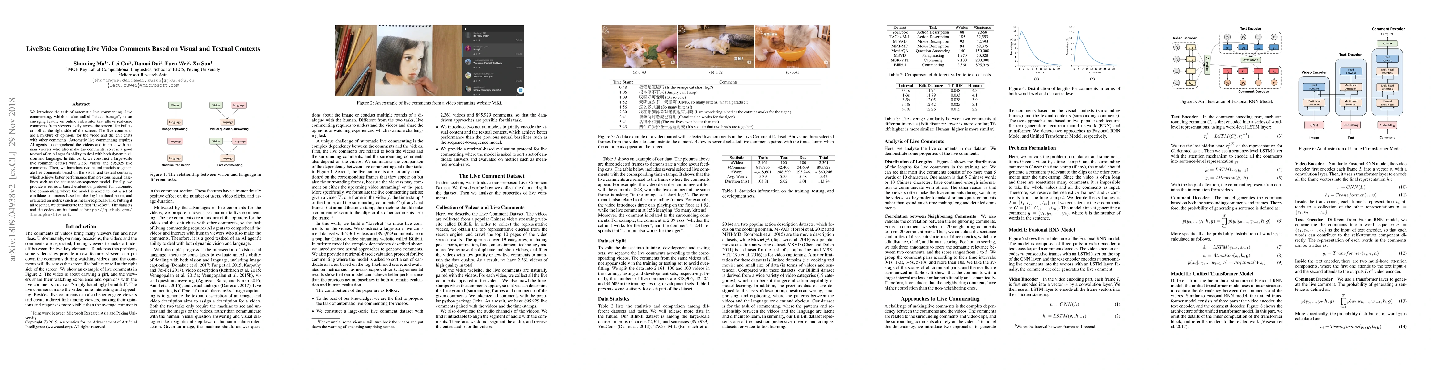 Researchers introduced a new AI model called LiveBot that can generate live video comments based on visual and textual contexts, outperforming previous models in this task.