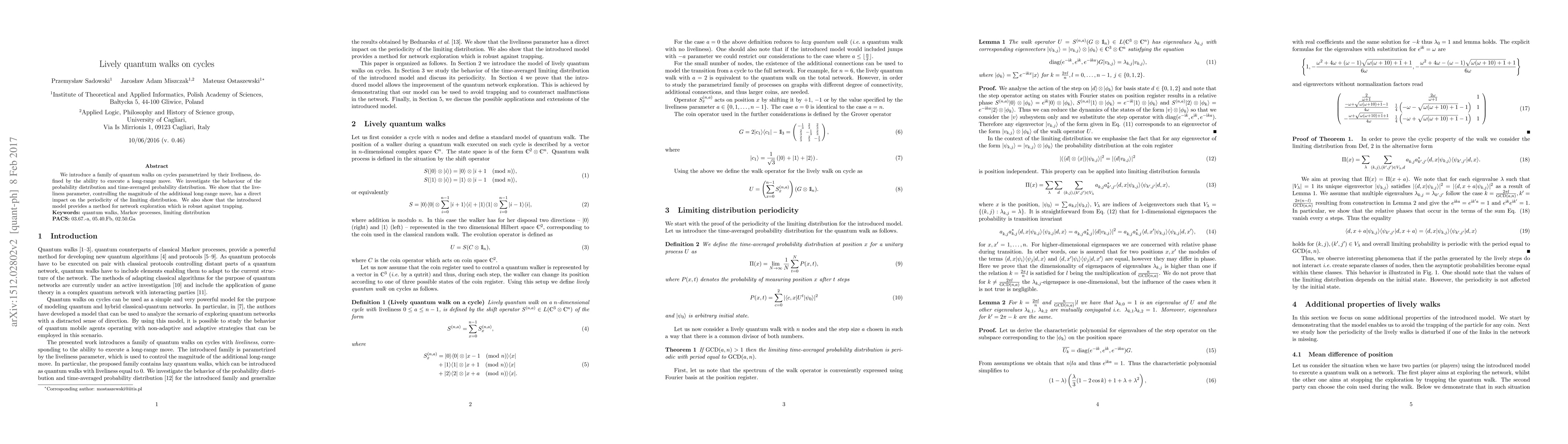 This paper introduces quantum walks on cycles with a liveliness parameter that enables long-range moves, demonstrating how this parameter affects the periodicity of the probability distribution and providing a robust method for network exploration.