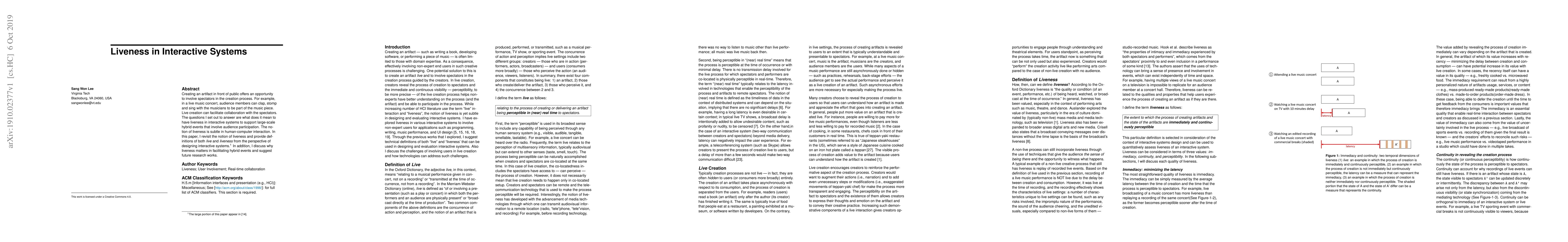 This paper explores the concept of liveness in interactive systems, defining liveness as the quality that supports audience participation in large-scale hybrid events. It emphasizes the importance of liveness in facilitating collaboration and suggests avenues for future research in this area.