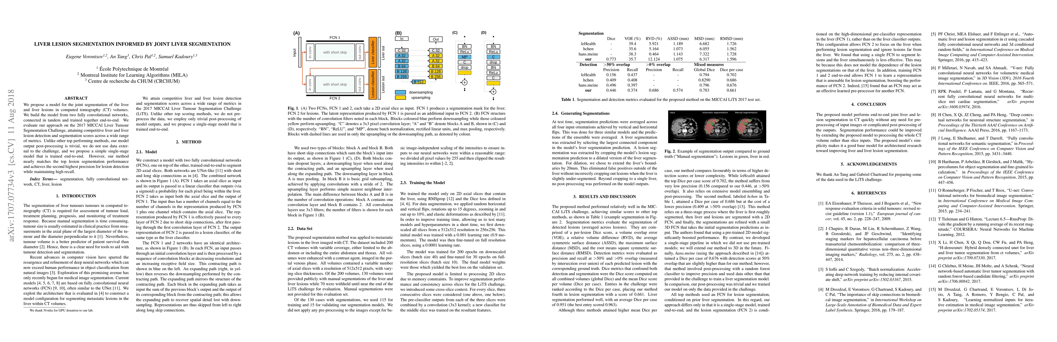 This paper proposes a joint segmentation model for liver and liver lesions in CT scans using two fully convolutional networks trained end-to-end, achieving competitive results in the 2017 MICCAI Liver Tumour Segmentation Challenge with minimal post-processing and no external data.