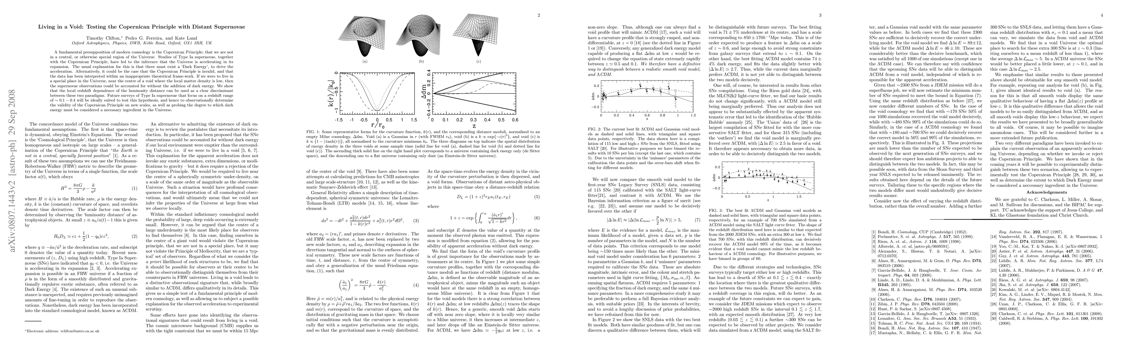 This paper investigates whether the Copernican Principle holds by examining Type Ia supernovae to determine if the Universe's expansion acceleration necessitates dark energy. It proposes that local voids could explain the observations without dark energy, suggesting future surveys in the redshift range of ~0.1-0.4 will test the Copernican Principle's validity.
