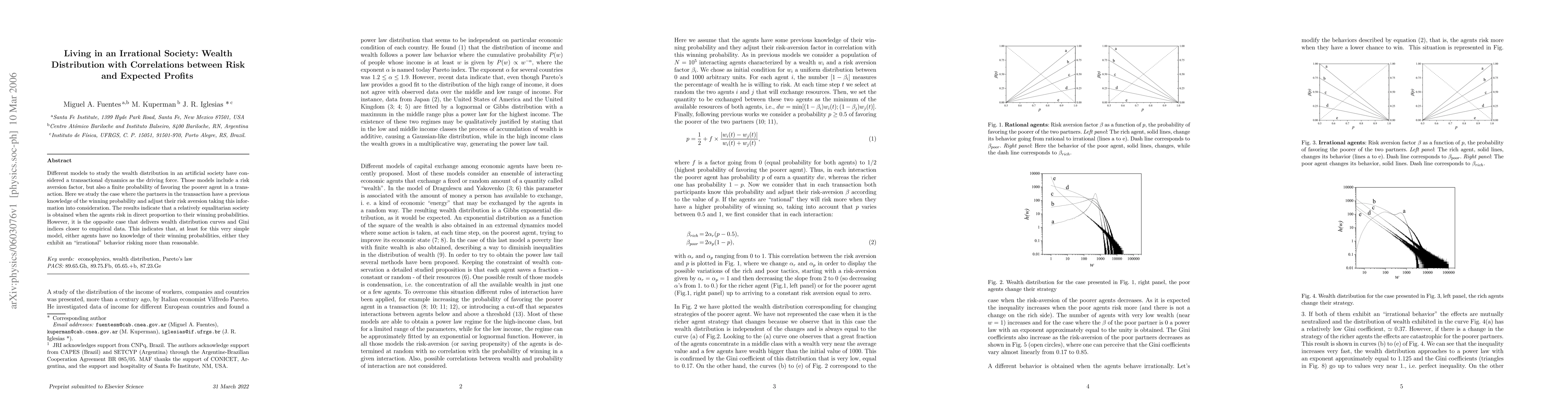 Different models to study the wealth distribution in an artificial society have considered a transactional dynamics as the driving force. Those models include a risk aversion factor, but also a finite probability of favoring the poorer agent in a transaction. Here we study the case where the partners in the transaction have a previous knowledge of the winning probability and adjust their risk aversion taking this information into consideration. The results indicate that a relatively equalitarian society is obtained when the agents risk in direct proportion to their winning probabilities. However, it is the opposite case that delivers wealth distribution curves and Gini indices closer to empirical data. This indicates that, at least for this very simple model, either agents have no knowledge of their winning probabilities, either they exhibit an ``irrational'' behavior risking more than reasonable.