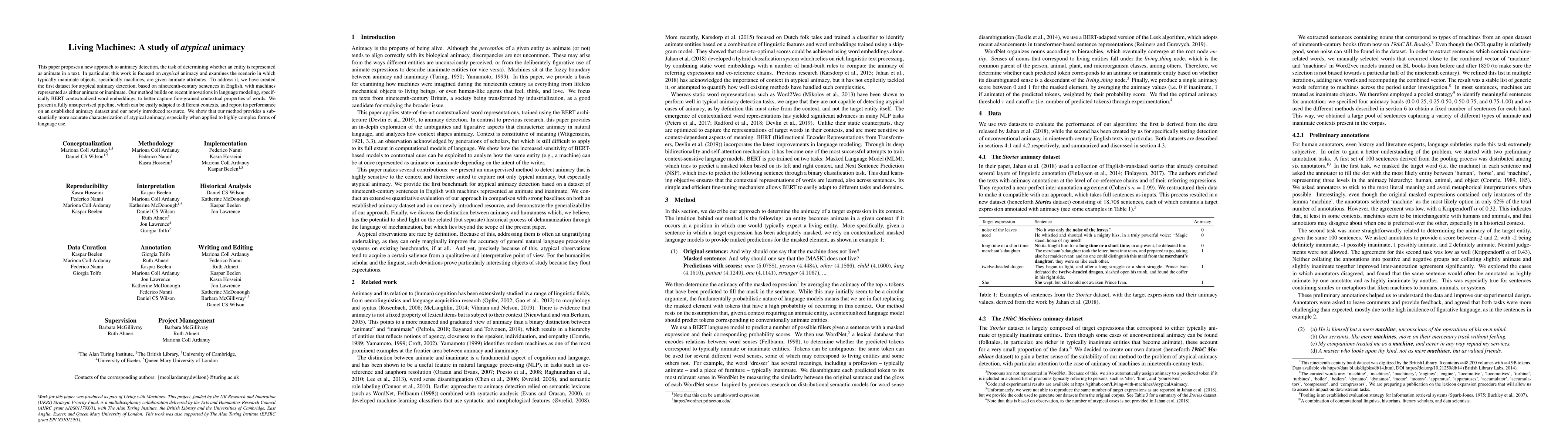 This paper proposes a new approach to animacy detection, the task of determining whether an entity is represented as animate in a text. In particular, this work is focused on atypical animacy and examines the scenario in which typically inanimate objects, specifically machines, are given animate attributes. To address it, we have created the first dataset for atypical animacy detection, based on nineteenth-century sentences in English, with machines represented as either animate or inanimate. Our method builds on recent innovations in language modeling, specifically BERT contextualized word embeddings, to better capture fine-grained contextual properties of words. We present a fully unsupervised pipeline, which can be easily adapted to different contexts, and report its performance on an established animacy dataset and our newly introduced resource. We show that our method provides a substantially more accurate characterization of atypical animacy, especially when applied to highly complex forms of language use.