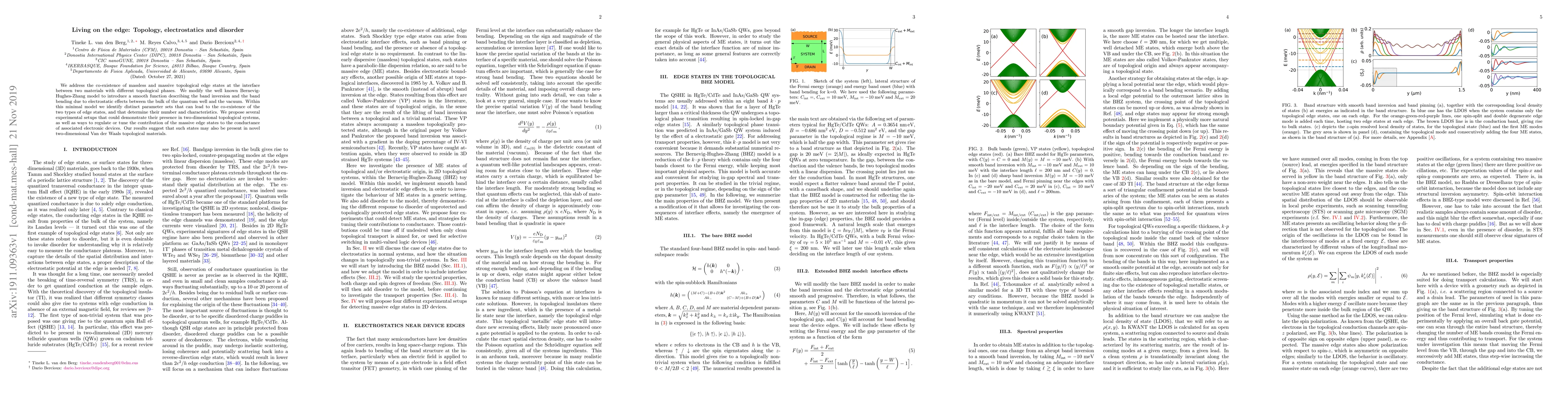 We address the co-existence of massless and massive topological edge states at the interface between two materials with different topological phases. We modify the well known Bernevig-Hughes-Zhang model to introduce a smooth function describing the band inversion and the band bending due to electrostatic effects between the bulk of the quantum well and the vacuum. Within this minimal model we identify distinct parameter sets that can lead to the co-existence of the two types of edge states, and that determine their number and characteristics. We propose several experimental setups that could demonstrate their presence in two-dimensional topological systems, as well as ways to regulate or tune the contribution of the massive edge states to the conductance of associated electronic devices. Our results suggest that such states may also be present in novel two-dimensional Van der Waals topological materials.