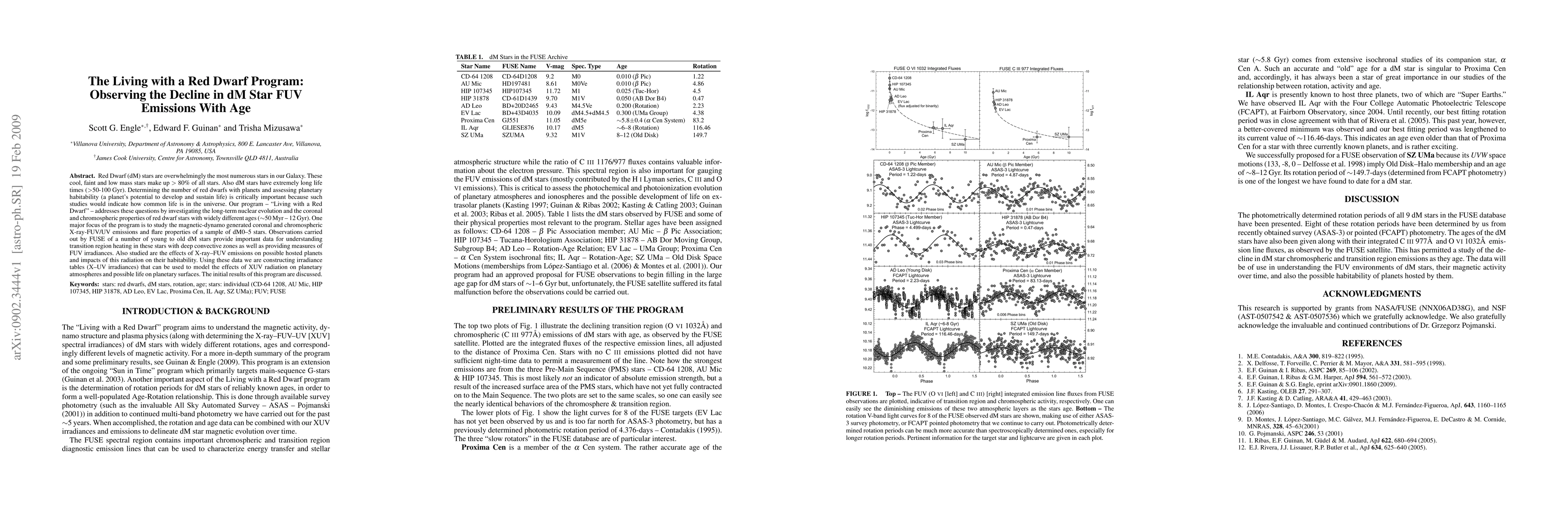 The 'Living with a Red Dwarf' program investigates the long-term nuclear evolution and coronal and chromospheric properties of red dwarf stars with widely different ages (~50 Myr -- 12 Gyr). It focuses on magnetic-dynamo generated coronal and chromospheric X-ray-FUV/UV emissions and flare properties of dM0--5 stars, using observations from FUSE of young to old dM stars.