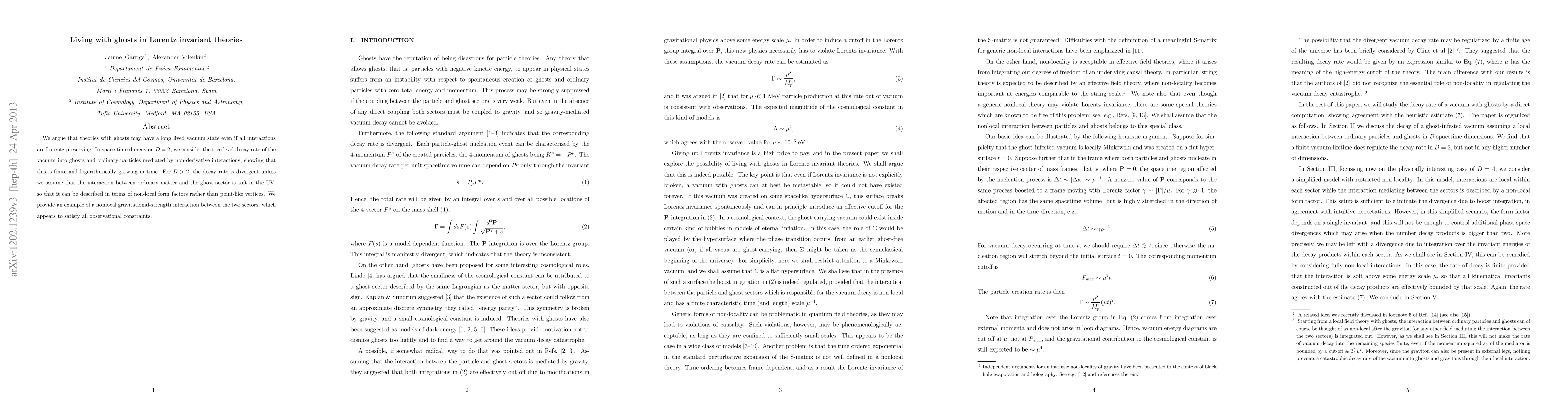 Theoretical research suggests that Lorentz invariant theories with ghost particles can have a long-lived vacuum state, contradicting earlier assumptions about their decay rates.