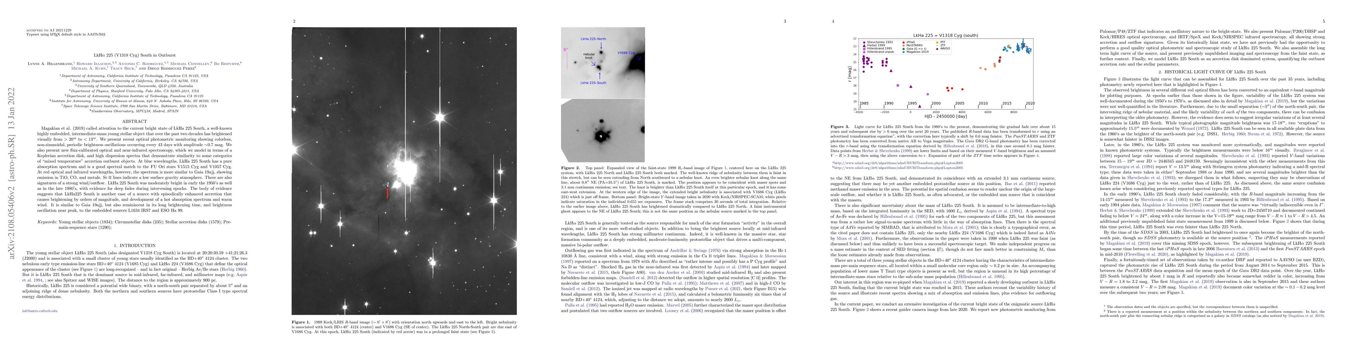Magakian et al. (2019) called attention to the current bright state of LkHa 225 South, which over the past two decades has changed from $>20^m$ to $<13^m$. We present recent optical photometric monitoring that shows colorless, non-sinusoidal, periodic brightness variations. The oscillations occur every 43 days, and have amplitude $\sim$0.7 mag with some variation among cycles. We also present new flux-calibrated optical and near-infrared spectroscopy, which we model in terms of a keplerian disk. Additional high dispersion spectra demonstrate the similarity of the absorption line pattern to some categories of "mixed temperature" accretion outburst objects. At blue wavelengths, LkHa 225 South has a pure absorption spectrum and is a good spectral match to the FU Ori stars V1515 Cyg and V1057 Cyg. At red optical and infrared wavelengths, however, the spectrum is more similar to Gaia 19ajj, showing emission in TiO, CO, and metals. Sr II lines indicate a low surface gravity atmosphere. There are also signatures of a strong wind/outflow. LkHa 225 South was moderately bright in early 1950's as well as in late 1980's, with evidence for deep fades during intervening epochs. The body of evidence suggests that LkHa225 South is another case of a source with episodically enhanced accretion that causes brightening by orders of magnitude, and development of a hot absorption spectrum and warm wind. It is similar to Gaia 19ajj, but also reminiscent in its long brightening time and brightness oscillation near peak, to the embedded sources L1634 IRS7 and ESO Ha 99.