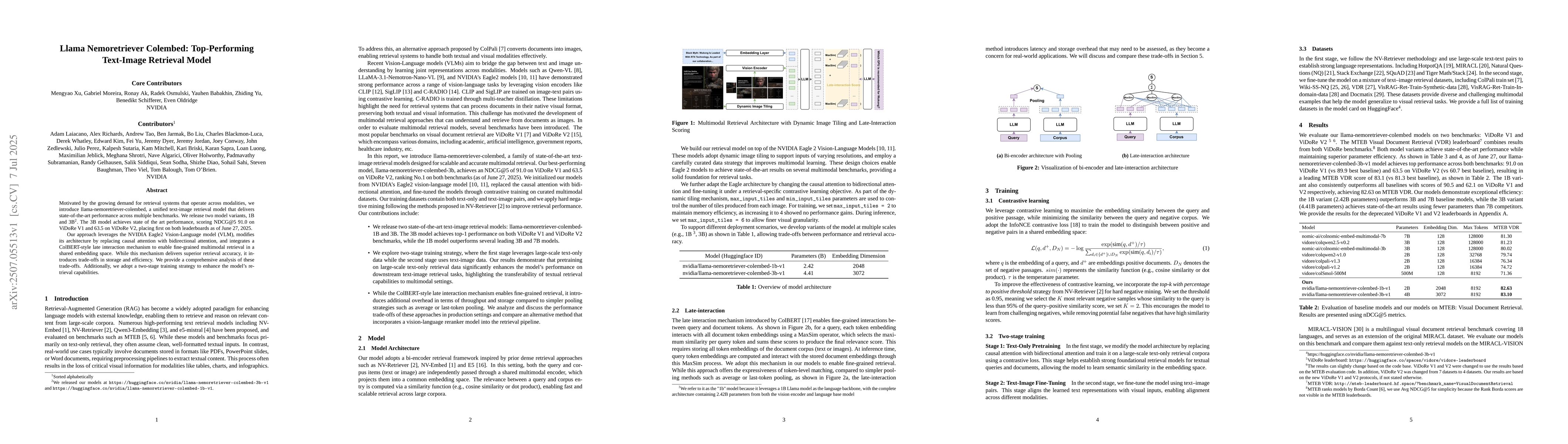 The research introduces llama-nemoretriever-colembed, a text-image retrieval model built by modifying NVIDIA Eagle2 Vision-Language model (VLM) with bidirectional attention and integrating a ColBERT-style late interaction mechanism for fine-grained multimodal retrieval in a shared embedding space.