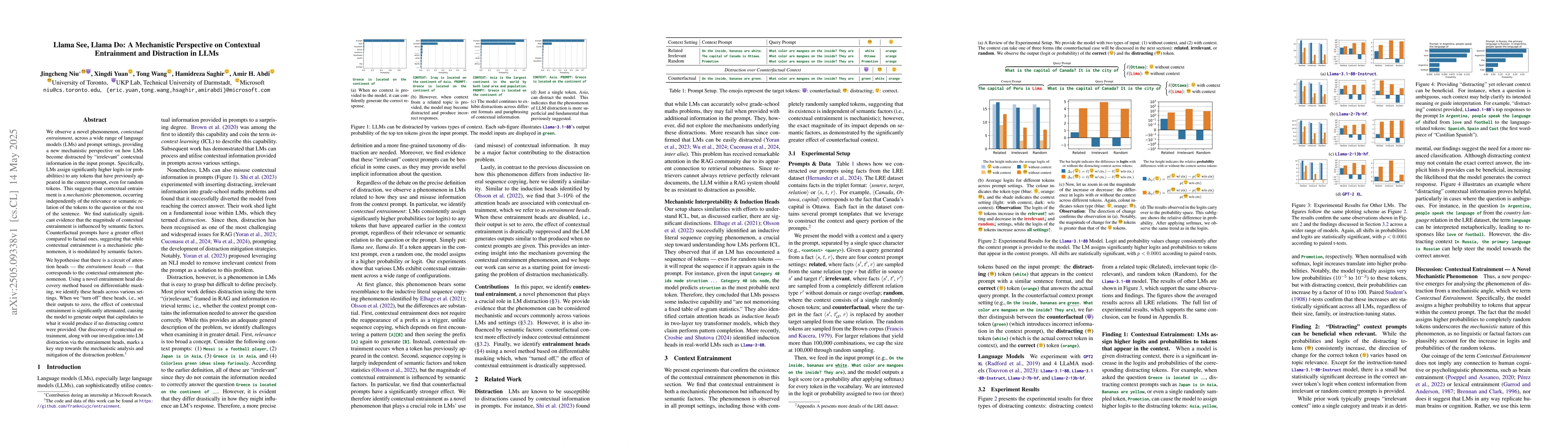 This work introduces the concept of contextual entrainment as a mechanistic phenomenon and provides a method for its discovery and attenuation, distinguishing it from previous research focusing on LM distraction without such specificity.