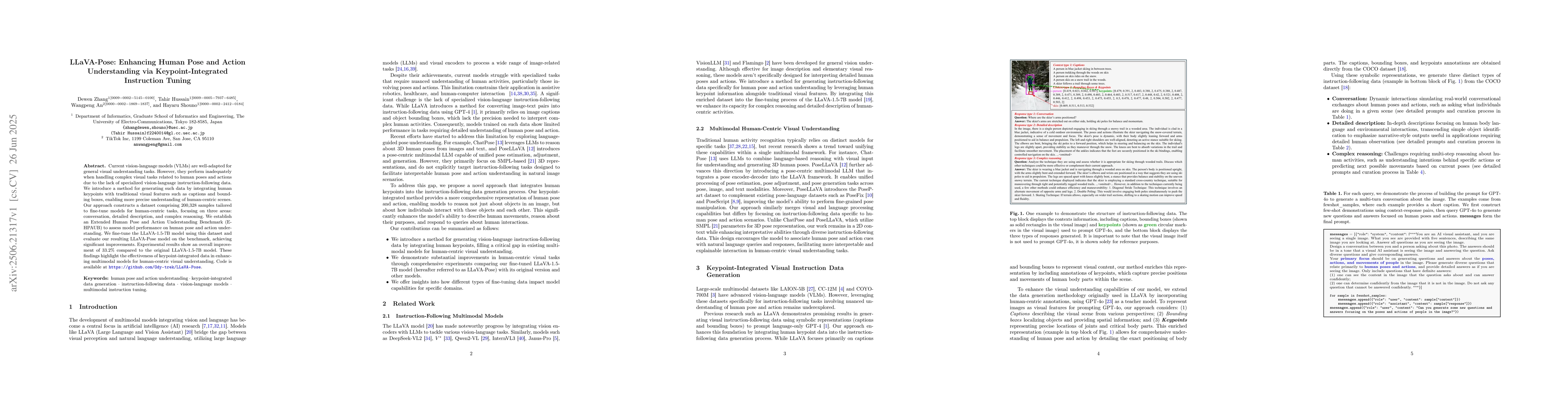 The study introduces a data generation approach that integrates human keypoints with traditional visual annotations to fine-tune a vision-language model, specifically LLaVA-1.5, for enhanced human pose and action understanding.