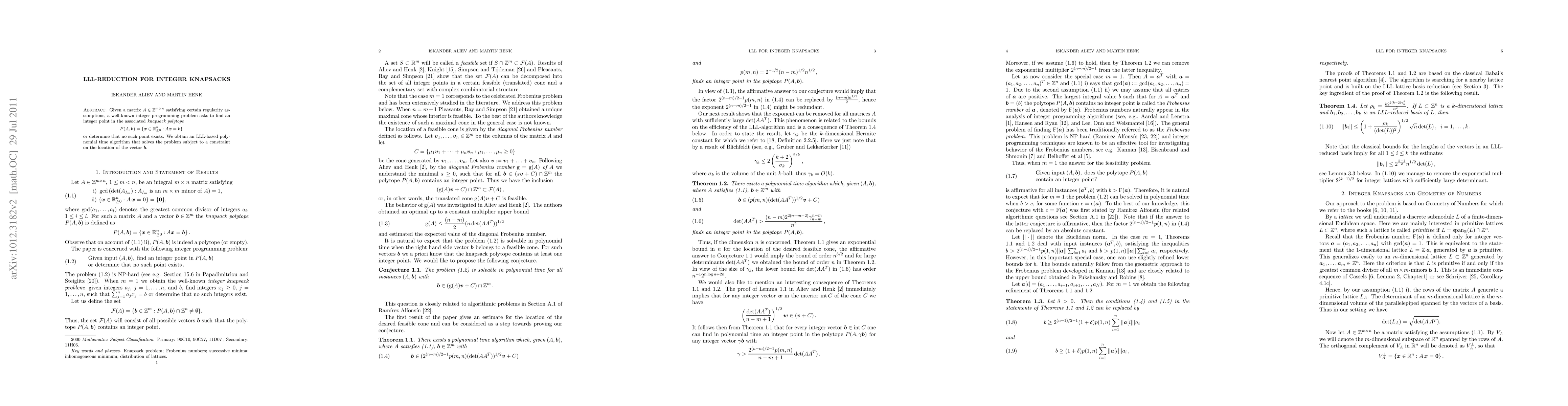 Researchers developed a new algorithm for solving integer knapsack problems using Linear LLL reduction, providing a polynomial-time solution with a constraint on the vector b's location.