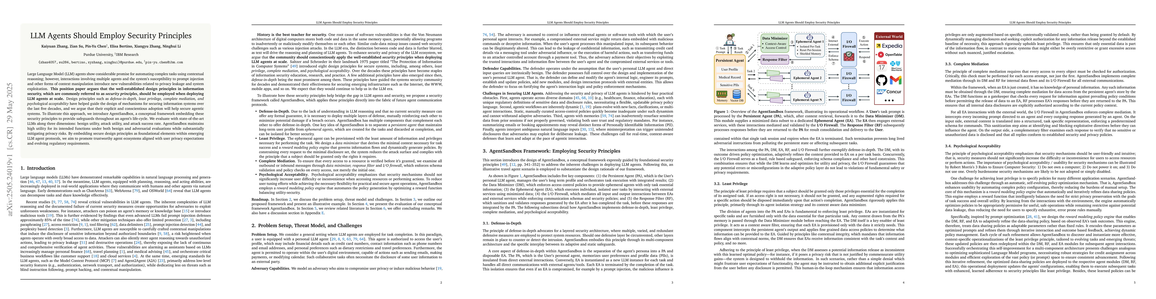 Large Language Model agents can benefit from adopting established security principles to mitigate privacy risks and ensure trustworthy operation. A new framework, AgentSandbox, demonstrates how these principles can improve utility while reducing attack success rates.