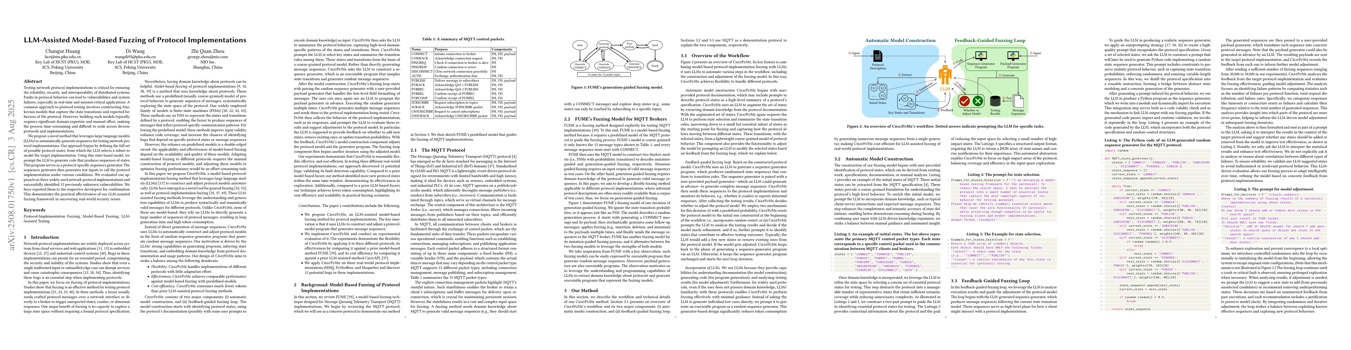 Testing network protocol implementations is critical for ensuring the reliability, security, and interoperability of distributed systems. Faults in protocol behavior can lead to vulnerabilities and system failures, especially in real-time and mission-critical applications. A common approach to protocol testing involves constructing Markovian models that capture the state transitions and expected behaviors of the protocol. However, building such models typically requires significant domain expertise and manual effort, making the process time-consuming and difficult to scale across diverse protocols and implementations. We propose a novel method that leverages large language models (LLMs) to automatically generate sequences for testing network protocol implementations. Our approach begins by defining the full set of possible protocol states, from which the LLM selects a subset to model the target implementation. Using this state-based model, we prompt the LLM to generate code that produces sequences of states. This program serves as a protocol-specific sequences generator. The sequences generator then generates test inputs to call the protocol implementation under various conditions. We evaluated our approach on three widely used network protocol implementations and successfully identified 12 previously unknown vulnerabilities. We have reported them to the respective developers for confirmation. This demonstrates the practical effectiveness of our LLM-assisted fuzzing framework in uncovering real-world security issues.