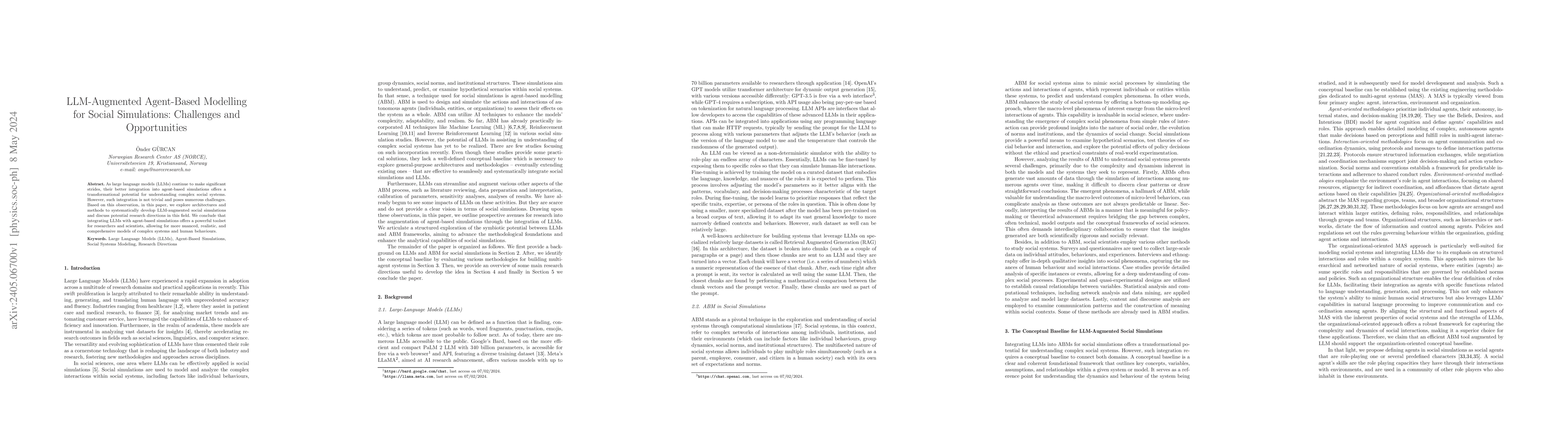 As large language models (LLMs) continue to make significant strides, their better integration into agent-based simulations offers a transformational potential for understanding complex social systems. However, such integration is not trivial and poses numerous challenges. Based on this observation, in this paper, we explore architectures and methods to systematically develop LLM-augmented social simulations and discuss potential research directions in this field. We conclude that integrating LLMs with agent-based simulations offers a powerful toolset for researchers and scientists, allowing for more nuanced, realistic, and comprehensive models of complex systems and human behaviours.