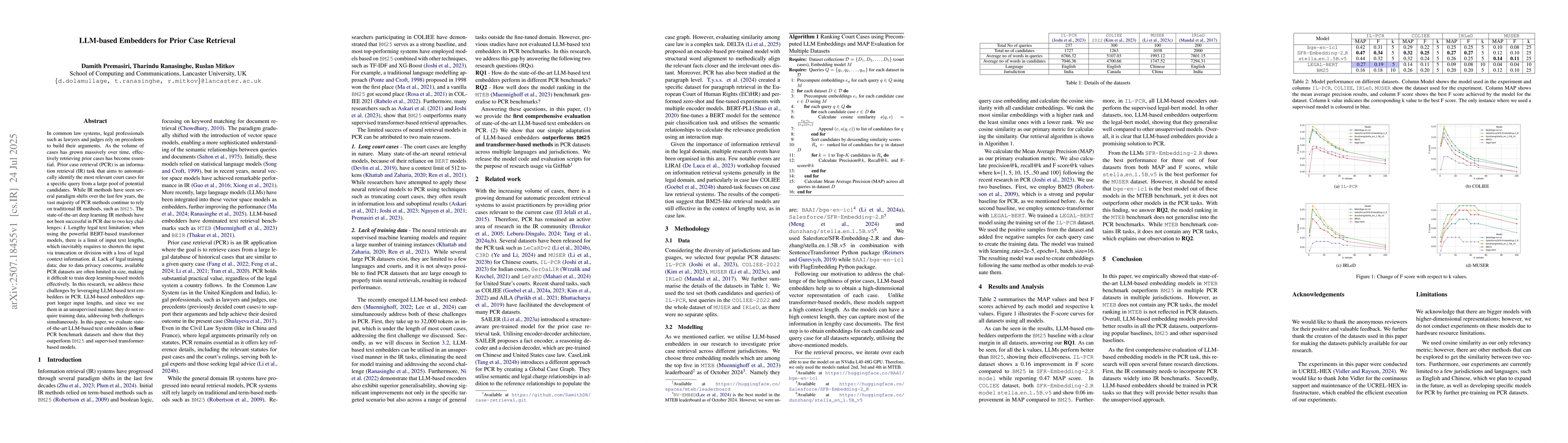 In common law systems, legal professionals such as lawyers and judges rely on precedents to build their arguments. As the volume of cases has grown massively over time, effectively retrieving prior cases has become essential. Prior case retrieval (PCR) is an information retrieval (IR) task that aims to automatically identify the most relevant court cases for a specific query from a large pool of potential candidates. While IR methods have seen several paradigm shifts over the last few years, the vast majority of PCR methods continue to rely on traditional IR methods, such as BM25. The state-of-the-art deep learning IR methods have not been successful in PCR due to two key challenges: i. Lengthy legal text limitation; when using the powerful BERT-based transformer models, there is a limit of input text lengths, which inevitably requires to shorten the input via truncation or division with a loss of legal context information. ii. Lack of legal training data; due to data privacy concerns, available PCR datasets are often limited in size, making it difficult to train deep learning-based models effectively. In this research, we address these challenges by leveraging LLM-based text embedders in PCR. LLM-based embedders support longer input lengths, and since we use them in an unsupervised manner, they do not require training data, addressing both challenges simultaneously. In this paper, we evaluate state-of-the-art LLM-based text embedders in four PCR benchmark datasets and show that they outperform BM25 and supervised transformer-based models.