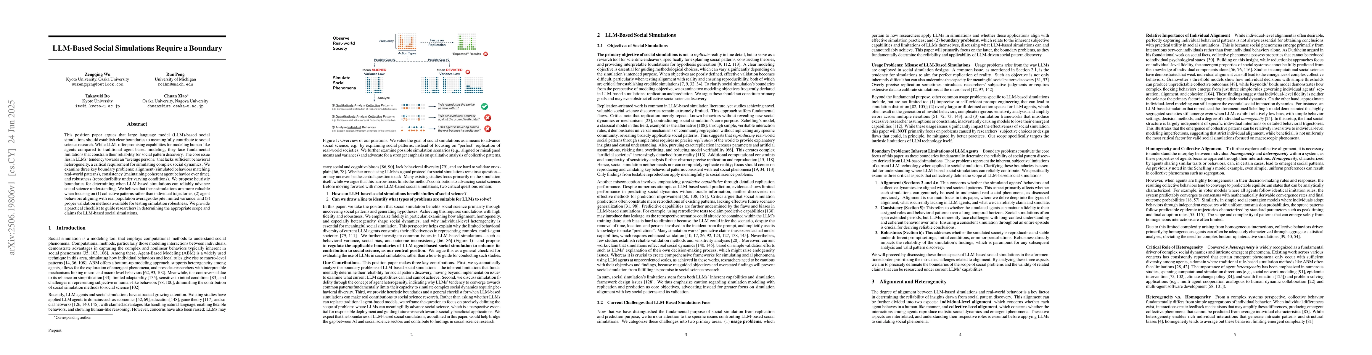 This position paper argues that large language model (LLM)-based social simulations should establish clear boundaries to meaningfully contribute to social science research. While LLMs offer promising capabilities for modeling human-like agents compared to traditional agent-based modeling, they face fundamental limitations that constrain their reliability for social pattern discovery. The core issue lies in LLMs' tendency towards an ``average persona'' that lacks sufficient behavioral heterogeneity, a critical requirement for simulating complex social dynamics. We examine three key boundary problems: alignment (simulated behaviors matching real-world patterns), consistency (maintaining coherent agent behavior over time), and robustness (reproducibility under varying conditions). We propose heuristic boundaries for determining when LLM-based simulations can reliably advance social science understanding. We believe that these simulations are more valuable when focusing on (1) collective patterns rather than individual trajectories, (2) agent behaviors aligning with real population averages despite limited variance, and (3) proper validation methods available for testing simulation robustness. We provide a practical checklist to guide researchers in determining the appropriate scope and claims for LLM-based social simulations.