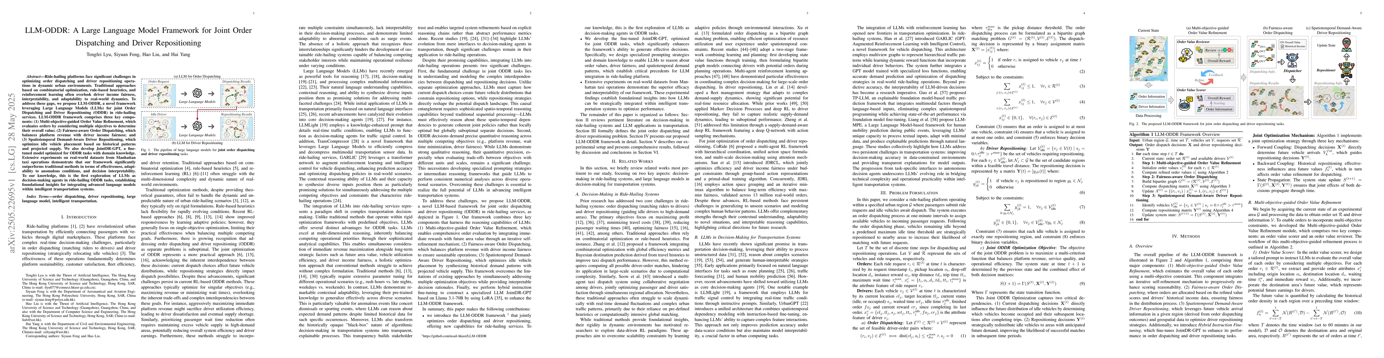 A new framework called LLM-ODDR uses large language models to optimize order dispatching and driver repositioning in ride-hailing services, improving effectiveness, adaptability, and fairness.
