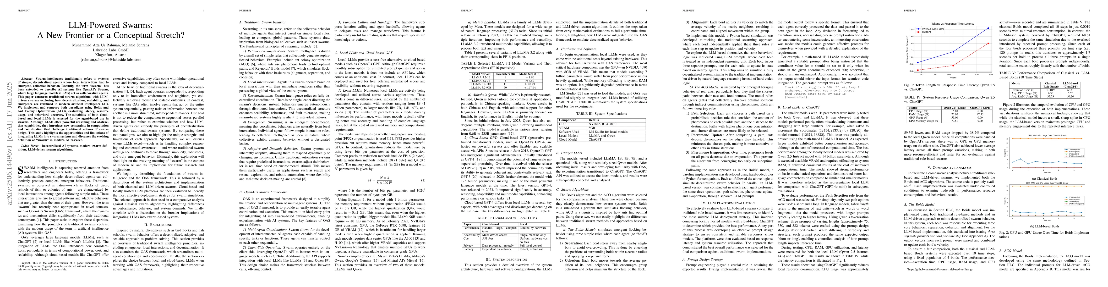 Swarm intelligence traditionally refers to systems of simple, decentralized agents whose local interactions lead to emergent, collective behavior. Recently, the term 'swarm' has been extended to describe AI systems like OpenAI's Swarm, where large language models (LLMs) act as collaborative agents. This paper contrasts traditional swarm algorithms with LLM-driven swarms exploring how decentralization, scalability, and emergence are redefined in modern artificial intelligence (AI). We implement and compare both paradigms using Boids and Ant Colony Optimization (ACO), evaluating latency, resource usage, and behavioral accuracy. The suitability of both cloud-based and local LLMs is assessed for the agent-based use in swarms. Although LLMs offer powerful reasoning and abstraction capabilities, they introduce new constraints in computation and coordination that challenge traditional notions of swarm design. This study highlights the opportunities and limitations of integrating LLMs into swarm systems and discusses the evolving definition of 'swarm' in modern AI research.