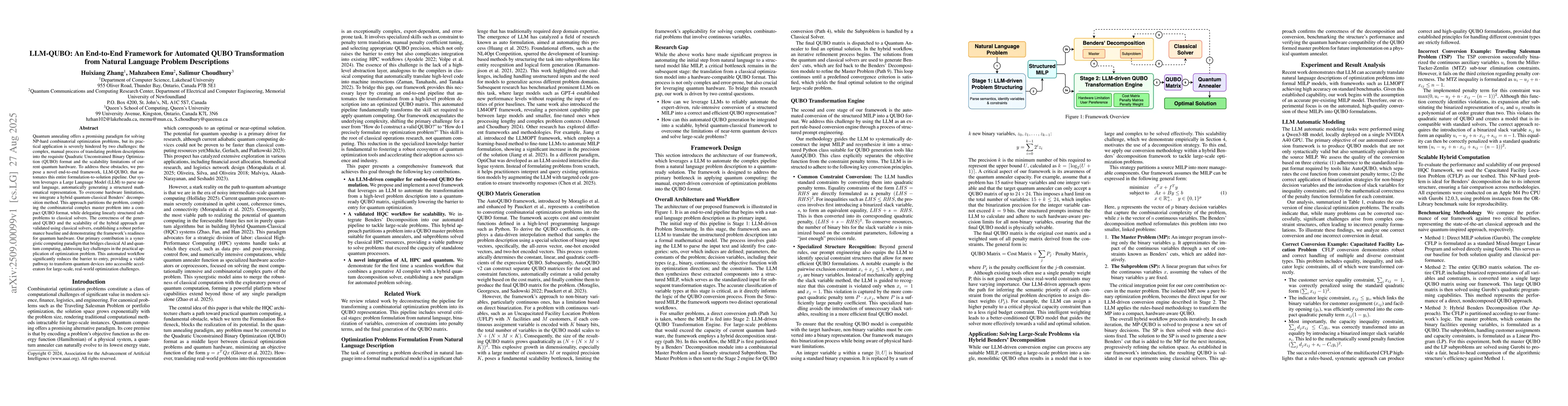 Quantum annealing offers a promising paradigm for solving NP-hard combinatorial optimization problems, but its practical application is severely hindered by two challenges: the complex, manual process of translating problem descriptions into the requisite Quadratic Unconstrained Binary Optimization (QUBO) format and the scalability limitations of current quantum hardware. To address these obstacles, we propose a novel end-to-end framework, LLM-QUBO, that automates this entire formulation-to-solution pipeline. Our system leverages a Large Language Model (LLM) to parse natural language, automatically generating a structured mathematical representation. To overcome hardware limitations, we integrate a hybrid quantum-classical Benders' decomposition method. This approach partitions the problem, compiling the combinatorial complex master problem into a compact QUBO format, while delegating linearly structured sub-problems to classical solvers. The correctness of the generated QUBO and the scalability of the hybrid approach are validated using classical solvers, establishing a robust performance baseline and demonstrating the framework's readiness for quantum hardware. Our primary contribution is a synergistic computing paradigm that bridges classical AI and quantum computing, addressing key challenges in the practical application of optimization problem. This automated workflow significantly reduces the barrier to entry, providing a viable pathway to transform quantum devices into accessible accelerators for large-scale, real-world optimization challenges.