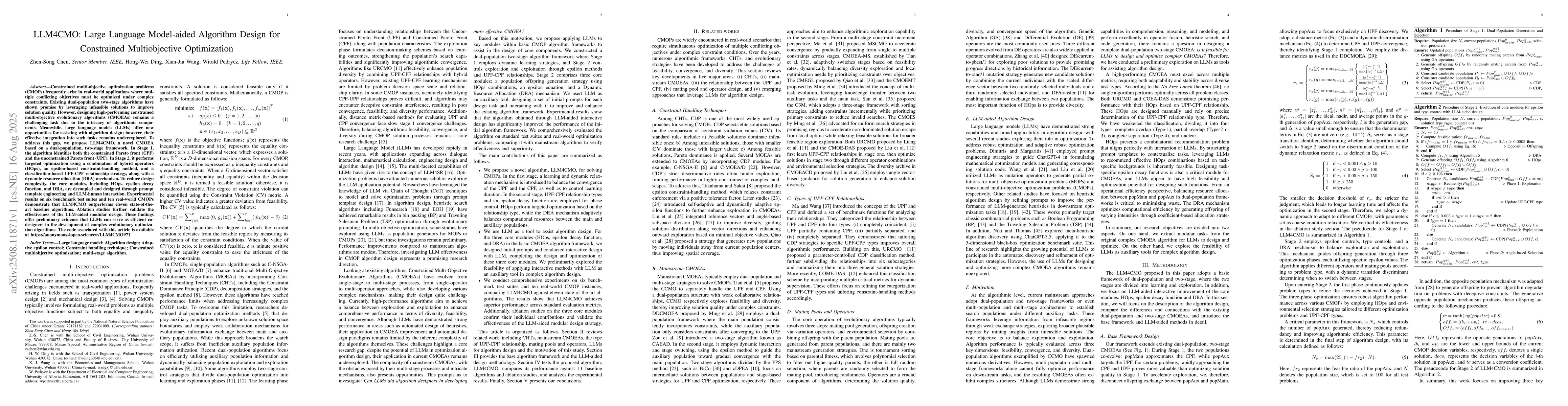 Constrained multi-objective optimization problems (CMOPs) frequently arise in real-world applications where multiple conflicting objectives must be optimized under complex constraints. Existing dual-population two-stage algorithms have shown promise by leveraging infeasible solutions to improve solution quality. However, designing high-performing constrained multi-objective evolutionary algorithms (CMOEAs) remains a challenging task due to the intricacy of algorithmic components. Meanwhile, large language models (LLMs) offer new opportunities for assisting with algorithm design; however, their effective integration into such tasks remains underexplored. To address this gap, we propose LLM4CMO, a novel CMOEA based on a dual-population, two-stage framework. In Stage 1, the algorithm identifies both the constrained Pareto front (CPF) and the unconstrained Pareto front (UPF). In Stage 2, it performs targeted optimization using a combination of hybrid operators (HOps), an epsilon-based constraint-handling method, and a classification-based UPF-CPF relationship strategy, along with a dynamic resource allocation (DRA) mechanism. To reduce design complexity, the core modules, including HOps, epsilon decay function, and DRA, are decoupled and designed through prompt template engineering and LLM-human interaction. Experimental results on six benchmark test suites and ten real-world CMOPs demonstrate that LLM4CMO outperforms eleven state-of-the-art baseline algorithms. Ablation studies further validate the effectiveness of the LLM-aided modular design. These findings offer preliminary evidence that LLMs can serve as efficient co-designers in the development of complex evolutionary optimization algorithms. The code associated with this article is available at https://anonymous.4open.science/r/LLM4CMO971.