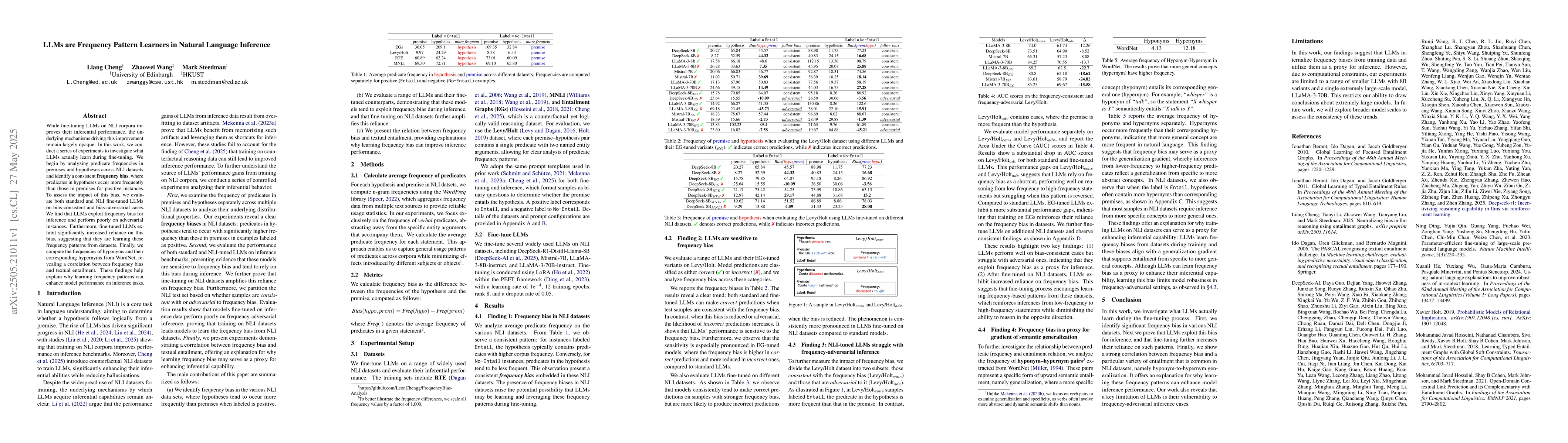 Large language models learn to exploit frequency patterns in natural language inference data, which enhances their performance on inference tasks but can make them vulnerable to adversarial instances. By analyzing frequency biases, the researchers shed light on the underlying mechanisms driving the improvement of LLMs on inference tasks.