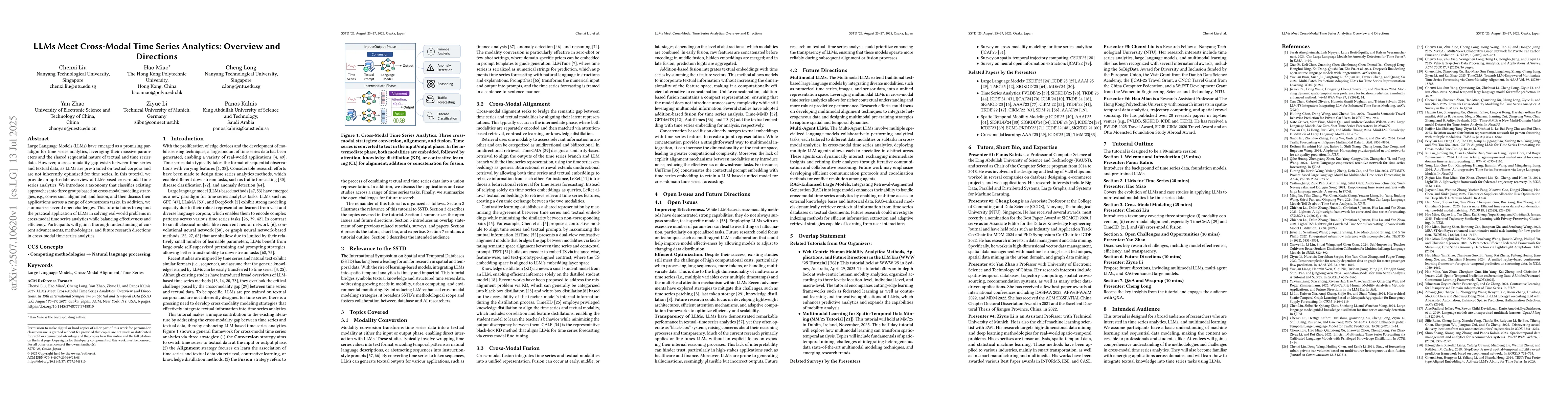 This tutorial offers an overview of using Large Language Models (LLMs) for cross-modal time series analytics, categorizing methods into conversion, alignment, and fusion strategies. It discusses applications, open challenges, and aims to advance LLM use in solving real-world cross-modal time series problems.