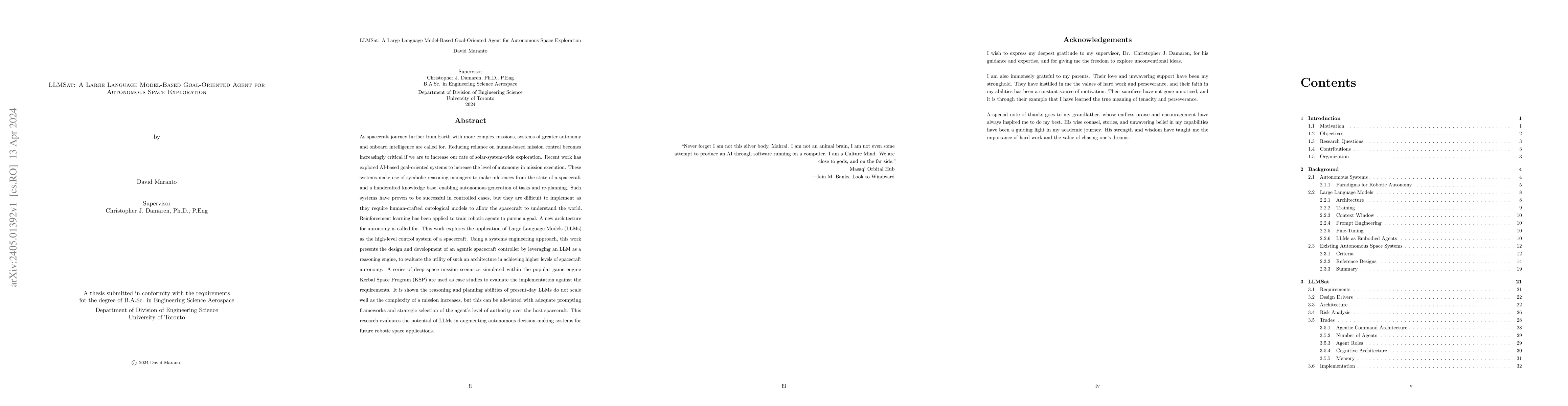 This paper introduces LLMSat, a Large Language Model-based agent designed for autonomous space exploration, aiming to reduce human reliance in mission control. The study evaluates LLMs as a reasoning engine in spacecraft autonomy, finding that while current models struggle with complex missions, improved prompting and authority control can enhance their effectiveness.