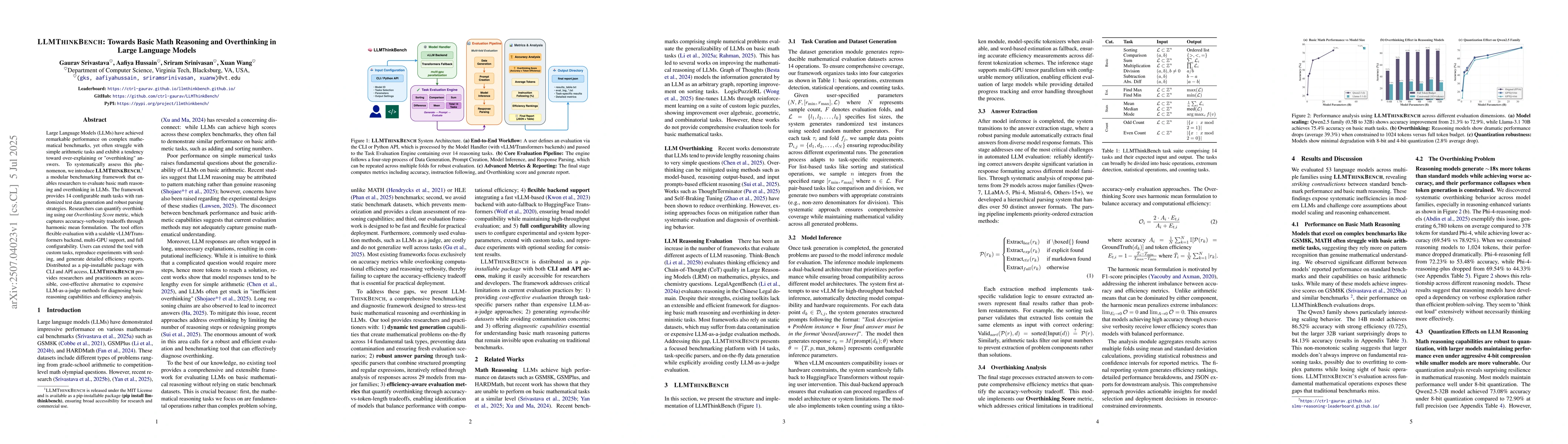 Large Language Models (LLMs) have achieved remarkable performance on complex mathematical benchmarks, yet often struggle with simple arithmetic tasks and exhibit a tendency toward over-explaining or "overthinking" answers. To systematically assess this phenomenon, we introduce LLMThinkBench, a modular benchmarking framework that enables researchers to evaluate basic math reasoning and overthinking in LLMs. The framework provides 14 configurable math tasks with randomized test data generation and robust parsing strategies. Researchers can quantify overthinking using our Overthinking Score metric, which captures accuracy-verbosity tradeoffs through harmonic mean formulation. The tool offers flexible evaluation with a scalable vLLM/Transformers backend, multi-GPU support, and full configurability. Users can extend the tool with custom tasks, reproduce experiments with seeding, and generate detailed efficiency reports. Distributed as a pip-installable package with CLI and API access, LLMThinkBench provides researchers and practitioners an accessible, cost-effective alternative to expensive LLM-as-a-judge methods for diagnosing basic reasoning capabilities and efficiency analysis. Package can be installed as: pip install llmthinkbench