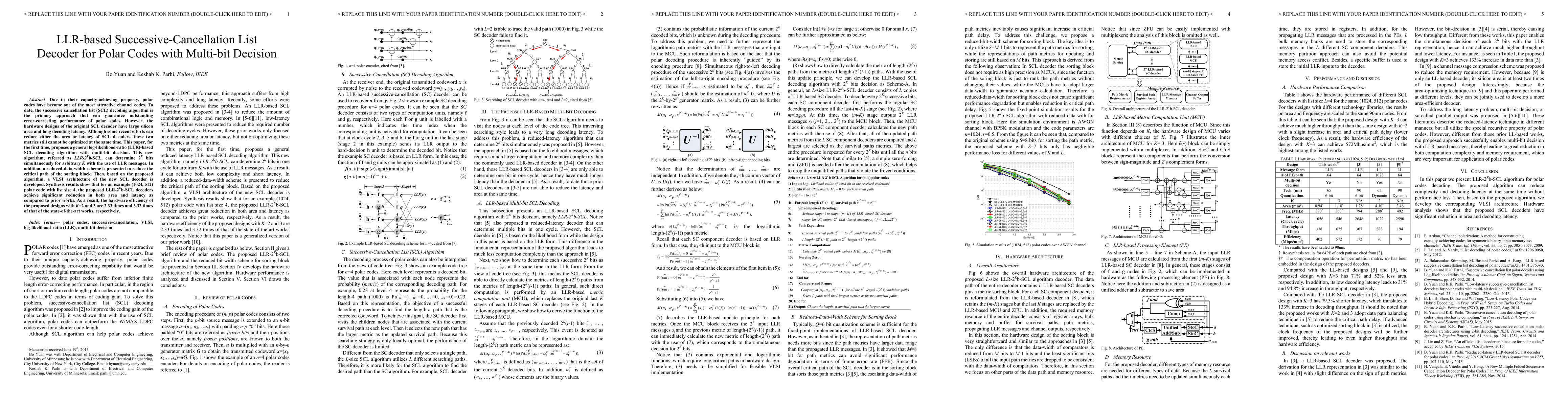 This paper introduces a novel LLR-based Successive-Cancellation List (SCL) decoding algorithm for polar codes, called LLR-2Kb-SCL, which processes 2K bits simultaneously using LLR messages. It also presents a reduced-data-width scheme to minimize decoding latency. The new architecture demonstrates significant area and latency reduction compared to existing SCL decoders, with hardware efficiency improvements of 2.33x and 3.32x for K=2 and 3, respectively.