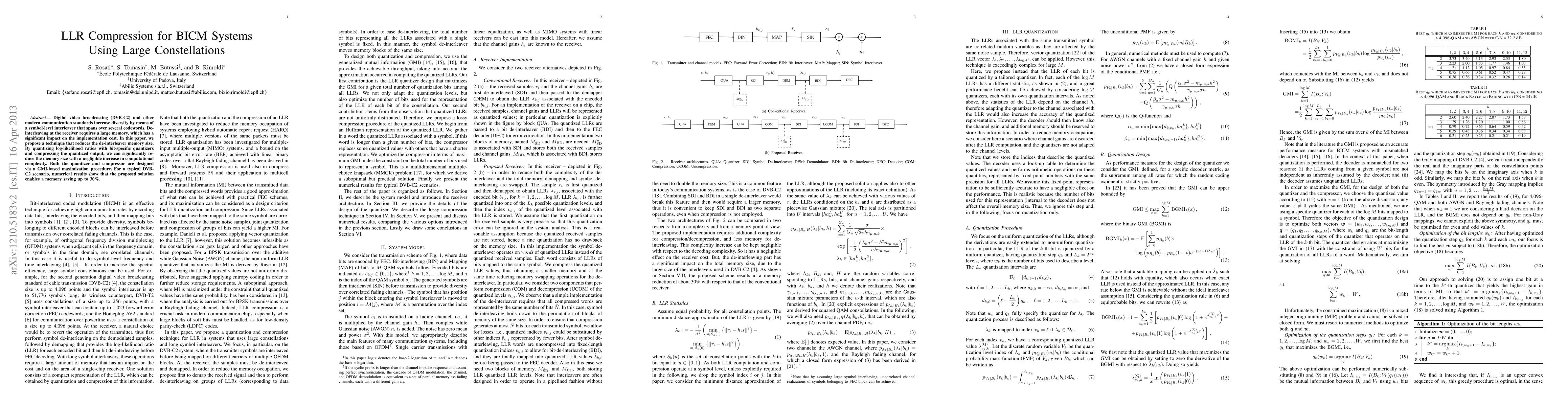Digital video broadcasting (DVB-C2) and other modern communication standards increase diversity by means of a symbol-level interleaver that spans over several codewords. De-interleaving at the receiver requires a large memory, which has a significant impact on the implementation cost. In this paper, we propose a technique that reduces the de-interleaver memory size. By quantizing log-likelihood ratios with bit-specific quantizers and compressing the quantized output, we can significantly reduce the memory size with a negligible increase in computational complexity. Both the quantizer and compressor are designed via a GMI-based maximization procedure. For a typical DVB-C2 scenario, numerical results show that the proposed solution enables a memory saving up to 30%.