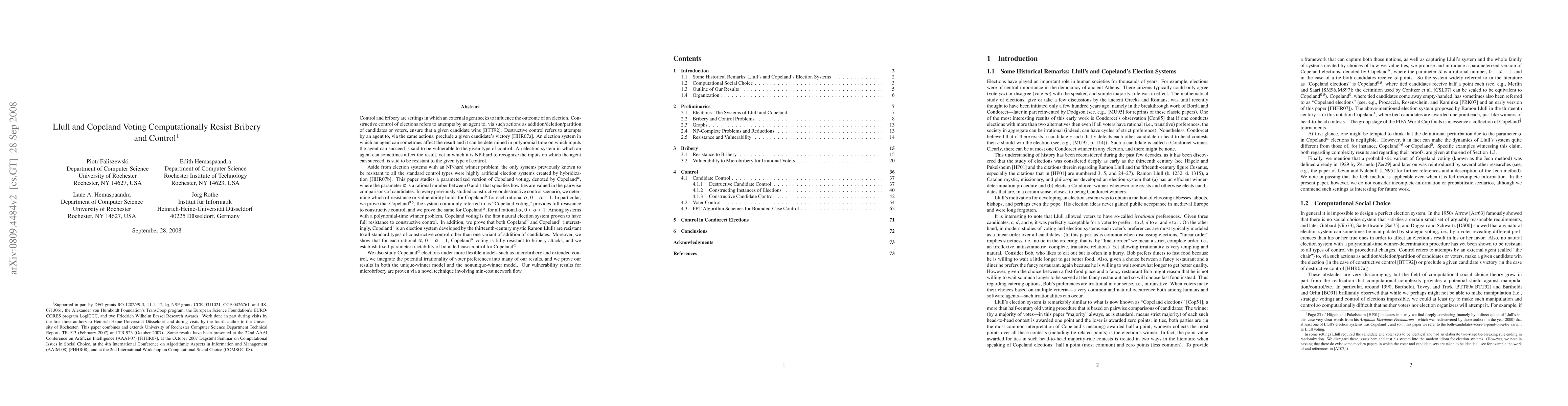 The only systems previously known to be resistant to all the standard control types were highly artificial election systems created by hybridization. We study a parameterized version of Copeland voting, denoted by Copeland^\alpha, where the parameter \alpha is a rational number between 0 and 1 that specifies how ties are valued in the pairwise comparisons of candidates. We prove that Copeland^{0.5}, the system commonly referred to as "Copeland voting," provides full resistance to constructive control, and we prove the same for Copeland^\alpha, for all rational \alpha, 0 < \alpha < 1. Copeland voting is the first natural election system proven to have full resistance to constructive control. We also prove that both Copeland^1 (Llull elections) and Copeland^0 are resistant to all standard types of constructive control other than one variant of addition of candidates. Moreover, we show that for each rational \alpha, 0 \leq \alpha \leq 1, Copeland^\alpha voting is fully resistant to bribery attacks, and we establish fixed-parameter tractability of bounded-case control for Copeland^\alpha. We also study Copeland^\alpha elections under more flexible models such as microbribery and extended control and we integrate the potential irrationality of voter preferences into many of our results.