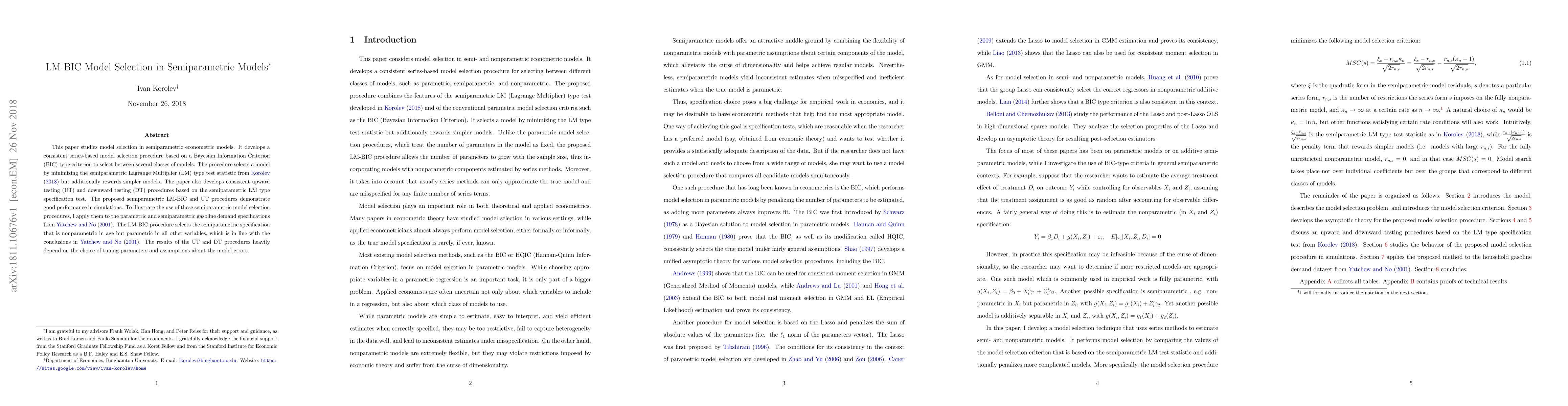 This research is significant as it provides a robust model selection procedure for semiparametric models, which are common in econometrics. The LM-BIC procedure's ability to balance model fit with simplicity can aid in more accurate and interpretable model specification, especially in fields where understanding variable effects is crucial.
