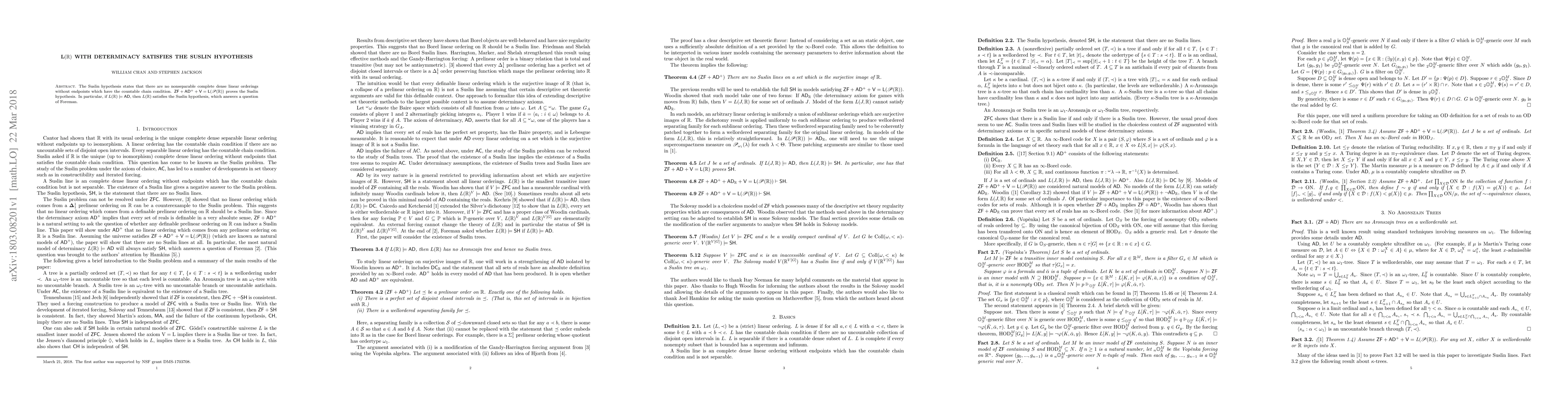 The Suslin hypothesis states that there are no nonseparable complete dense linear orderings without endpoints which have the countable chain condition. $\mathsf{ZF + AD^+ + V = L(\mathscr{P}(\mathbb{R}))}$ proves the Suslin hypothesis. In particular, if $L(\mathbb{R}) \models \mathsf{AD}$, then $L(\mathbb{R})$ satisfies the Suslin hypothesis, which answers a question of Foreman.