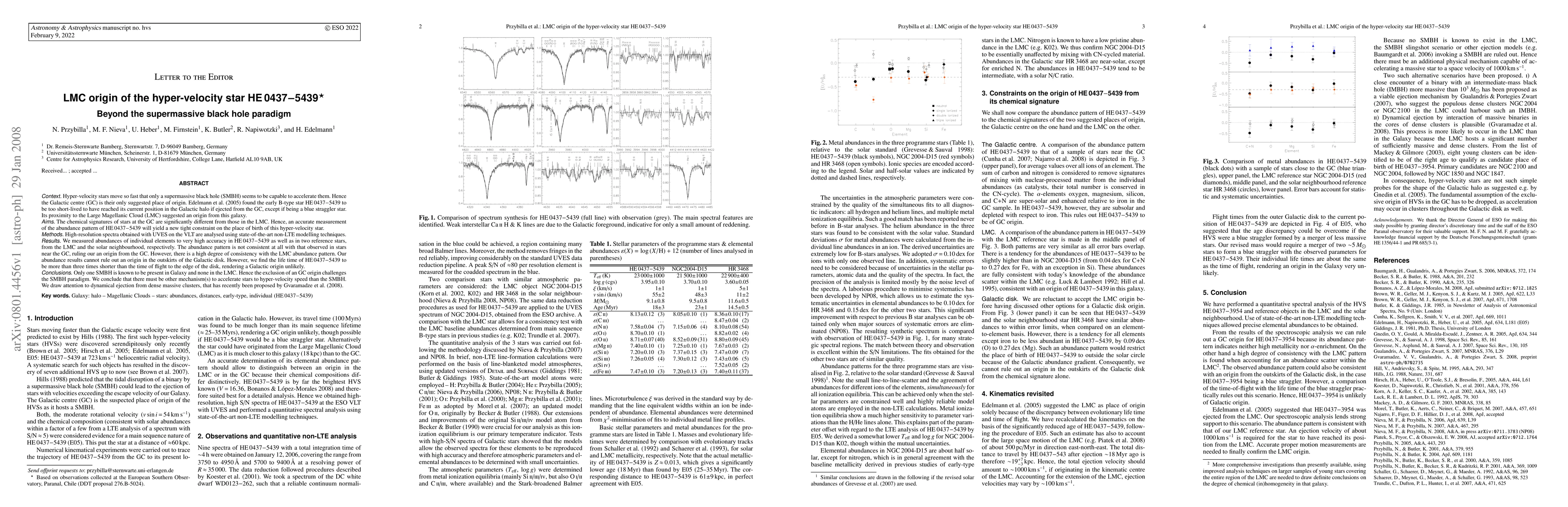 Context: Hyper-velocity stars move so fast that only a supermassive black hole (SMBH) seems to be capable to accelerate them. Hence the Galactic centre (GC) is their only suggested place of origin. Edelmann et al. (2005) found the early B-star HE0437-5439 to be too short-lived to have reached its current position in the Galactic halo if ejected from the GC, except if being a blue straggler. Its proximity to the LMC suggested an origin from this galaxy. Aims: The chemical signatures of stars at the GC are significantly different from those in the LMC. Hence, an accurate measurement of the abundance pattern of HE0437-5439 will yield a new tight constraint on the place of birth of this star. Methods: High-resolution spectra obtained with UVES on the VLT are analysed using state-of-the-art non-LTE modelling techniques. Results: We measured abundances of individual elements to very high accuracy in HE0437-5439 as well as in two reference stars, from the LMC and the solar neighbourhood. The abundance pattern is not consistent at all with that observed in stars near the GC, ruling our an origin from the GC. However, there is a high degree of consistency with the LMC abundance pattern. Our abundance results cannot rule out an origin in the outskirts of the Galactic disk. However, we find the life time of HE0437-5439 to be more than 3 times shorter than the time of flight to the edge of the disk, rendering a Galactic origin unlikely. Conclusions: Only one SMBH is known to be present in Galaxy and none in the LMC. Hence the exclusion of an GC origin challenges the SMBH paradigm. We conclude that there must be other mechanism(s) to accelerate stars to hyper-velocity speed than the SMBH. We draw attention to dynamical ejection from dense massive clusters, that has recently been proposed by Gvaramadze et al. (2008).
