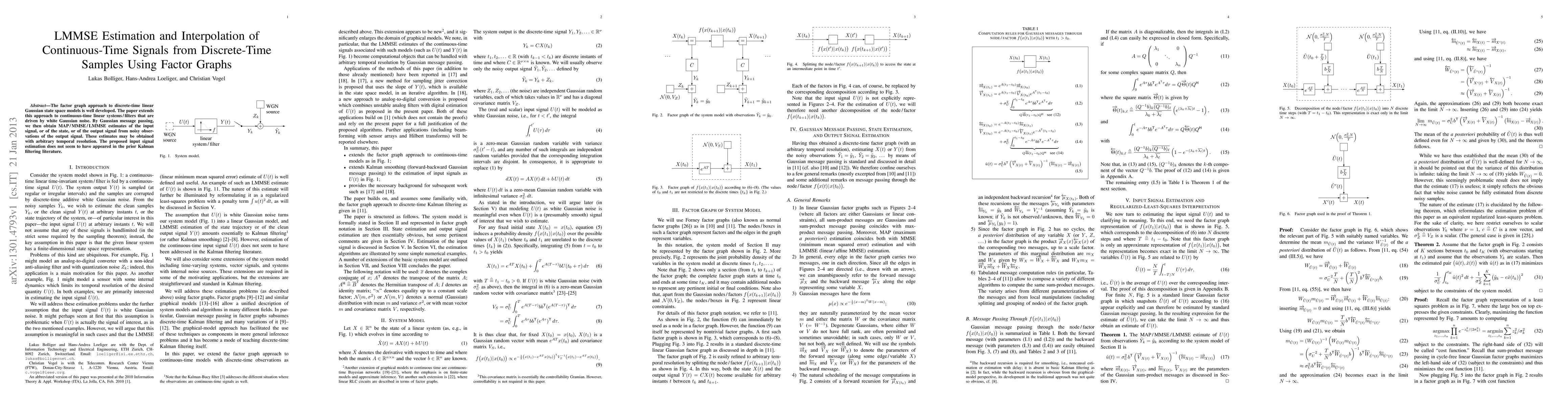This paper extends the factor graph approach to continuous-time linear systems, enabling the estimation and interpolation of continuous-time signals from discrete-time samples using Gaussian message passing. It introduces LMMSE estimation for input signals, a novel contribution not previously found in Kalman filtering literature.