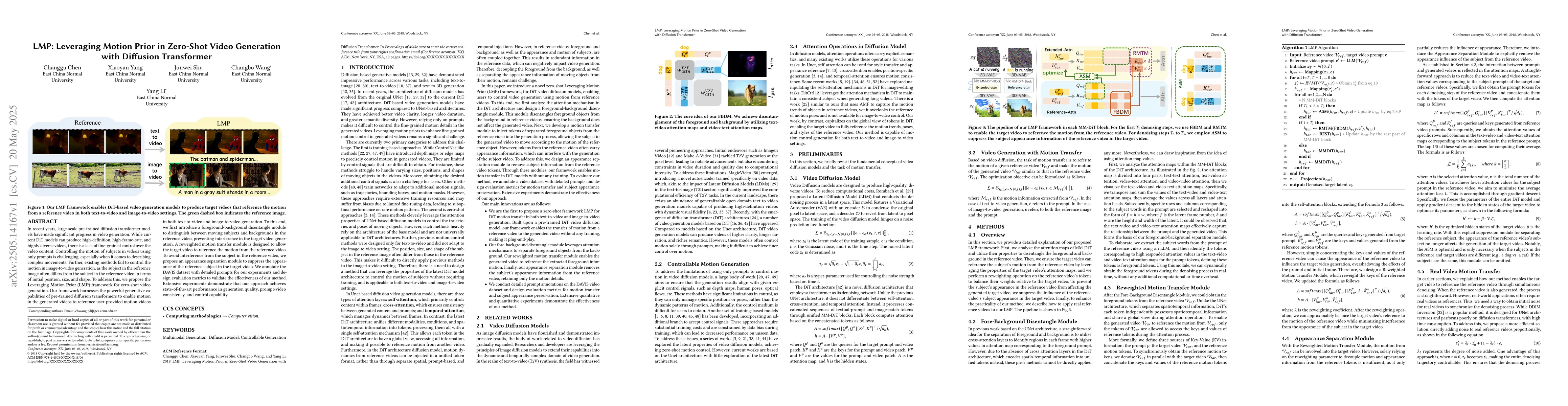 A new method called Leveraging Motion Prior (LMP) improves video generation by controlling subject motion in zero-shot videos, achieving state-of-the-art performance in quality, prompt-video consistency, and control capability.
