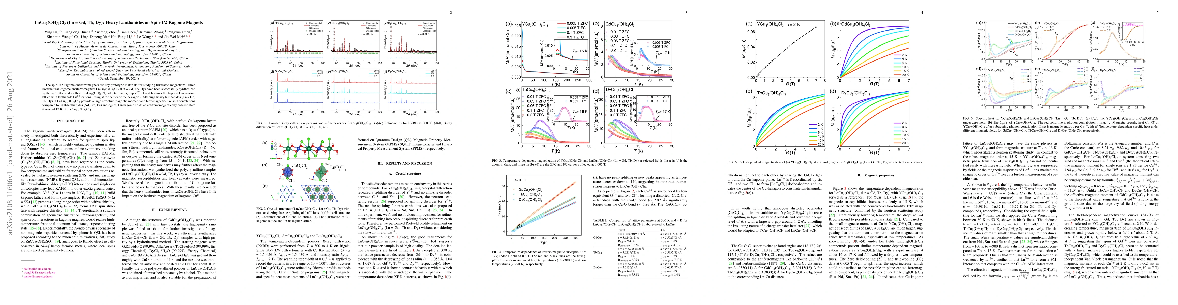 The paper reports the synthesis of spin-1/2 kagome antiferromagnets LnCu$_3$(OH)$_6$Cl$_3$ (Ln = Gd, Tb, Dy) and finds that despite their large effective magnetic moments, they maintain antiferromagnetic order around 17 K, similar to YCu$_3$(OH)$_6$Cl$_3$.