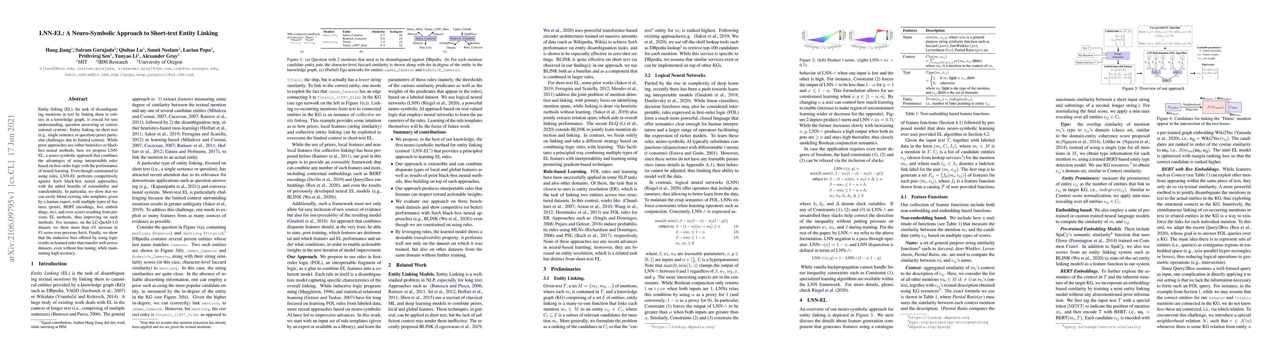This paper proposes LNN-EL, a neuro-symbolic approach to short-text entity linking that combines rules with neural learning, outperforming state-of-the-art methods with improved F1 score and transferability.