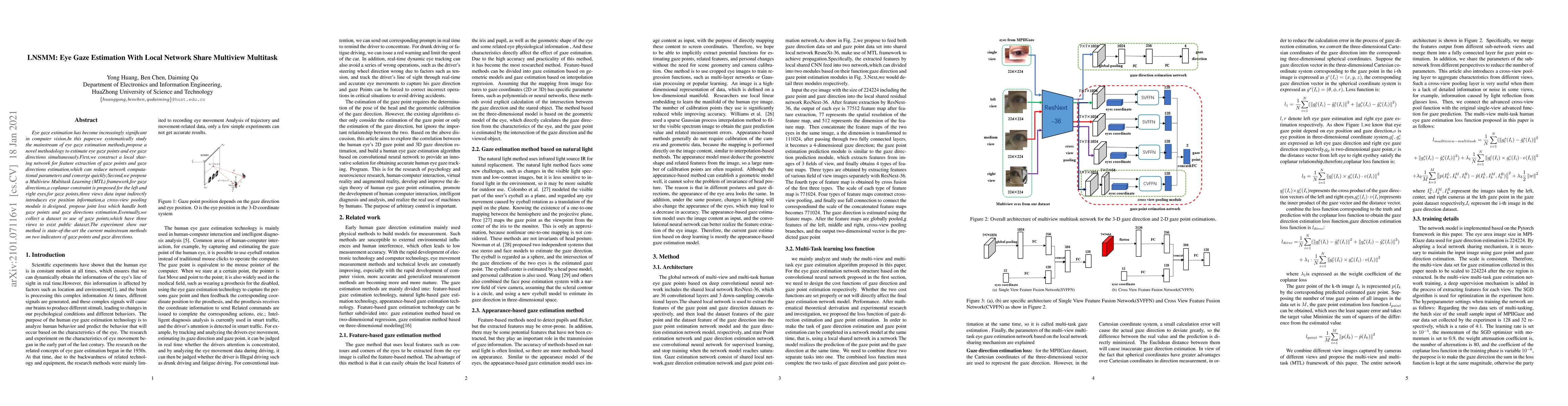 This paper proposes LNSMM, a novel method for simultaneous eye gaze point and direction estimation using a local sharing network and Multiview Multitask Learning. The approach leverages a coplanar constraint and cross-view pooling to enhance accuracy, outperforming current mainstream methods.