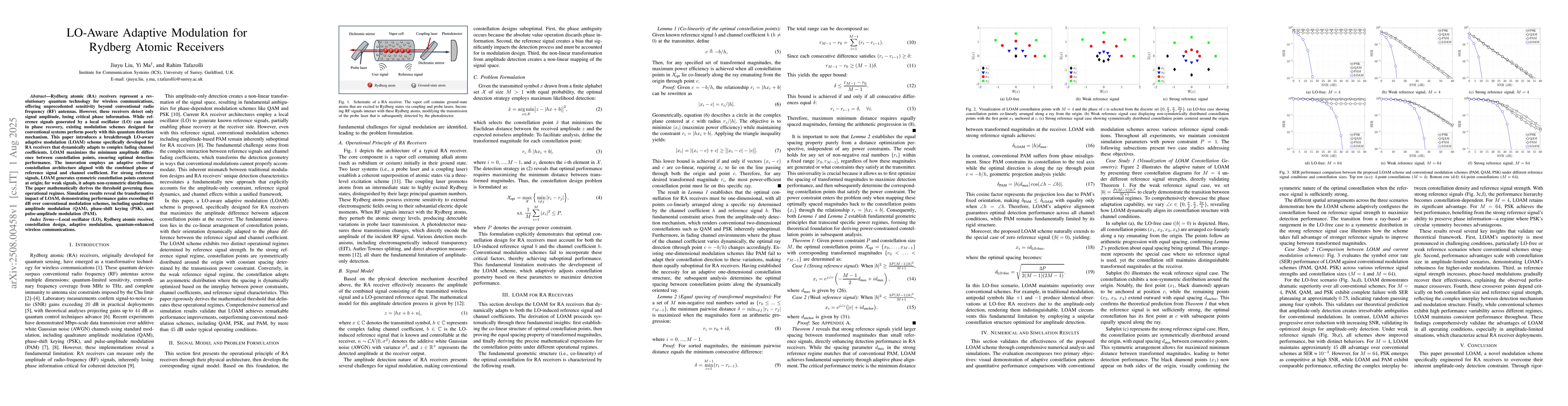 Rydberg atomic (RA) receivers represent a revolutionary quantum technology for wireless communications, offering unprecedented sensitivity beyond conventional radio frequency (RF) antennas. However, these receivers detect only signal amplitude, losing critical phase information. While reference signals generated by a local oscillator (LO) can assist in phase recovery, existing modulation schemes designed for conventional systems perform poorly with this quantum detection mechanism. This paper introduces a breakthrough LO-aware adaptive modulation (LOAM) scheme specifically developed for RA receivers that dynamically adapts to complex fading channel coefficients. LOAM maximizes the minimum amplitude difference between constellation points, ensuring optimal detection performance. The innovation employs an adaptive co-linear constellation architecture aligned with the combined phase of reference signal and channel coefficient. For strong reference signals, LOAM generates symmetric constellation points centered at origin; for weak signals, it adopts non-symmetric distributions. The paper mathematically derives the threshold governing these operational regimes. Simulation results reveal the transformative impact of LOAM, demonstrating performance gains exceeding 45 dB over conventional modulation schemes, including quadrature amplitude modulation (QAM), phase-shift keying (PSK), and pulse-amplitude modulation (PAM).
