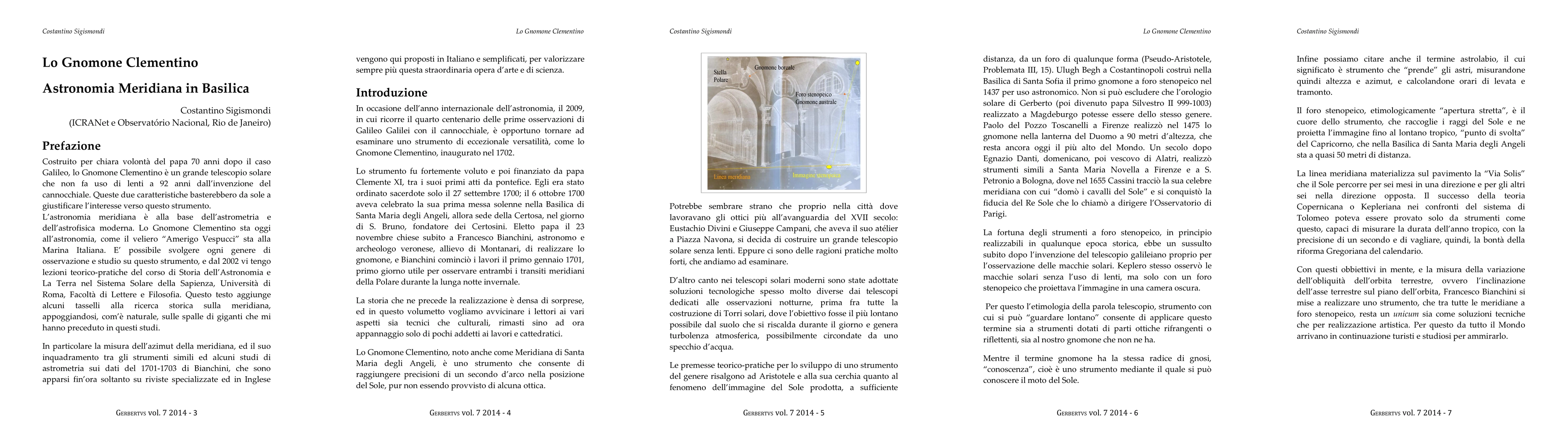 The Clementine Gnomon in Rome is a 1702 astronomical instrument that accurately tracked time for centuries. Its scientific functions and historical significance are reviewed, highlighting its importance as an early example of precision timekeeping.